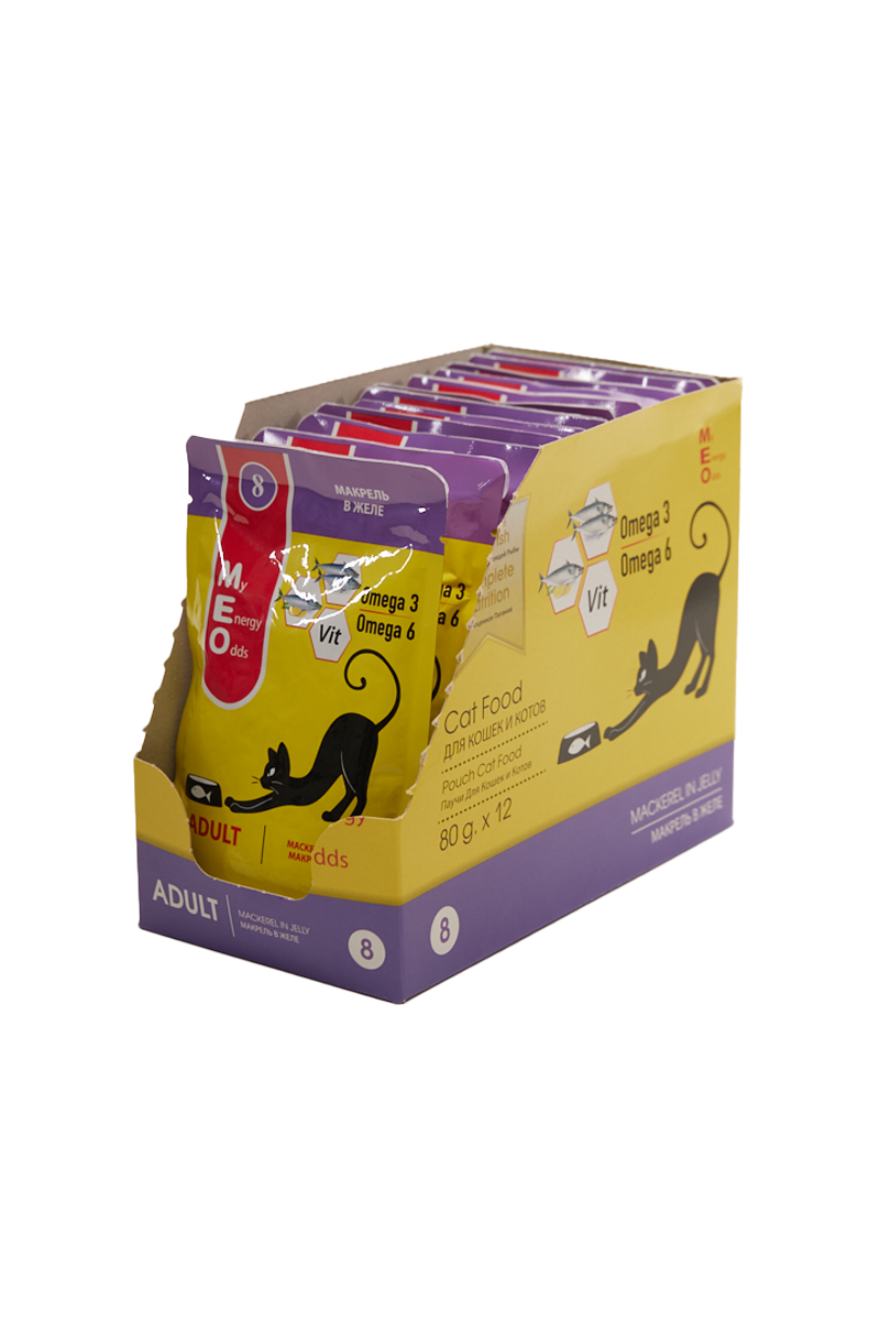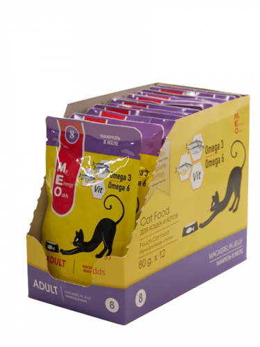 MEO влажный корм для взрослых кошек с макрелью в желе, в паучах - 80 г х 12 шт интересное:
