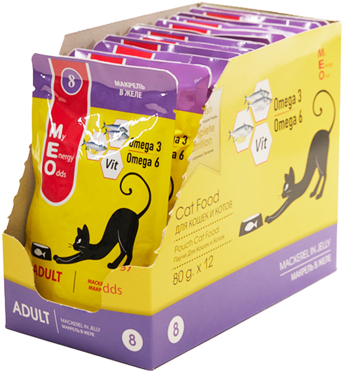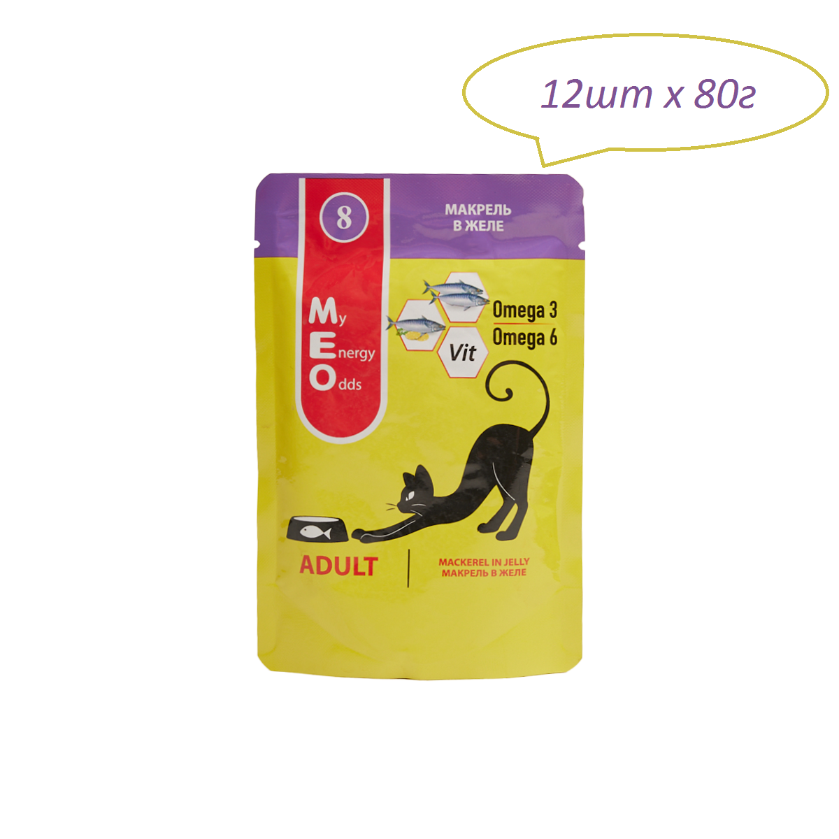 Консервы ME-O ADULT №8 для взрослых кошек с макрелью в желе (80 гр х 12 шт)