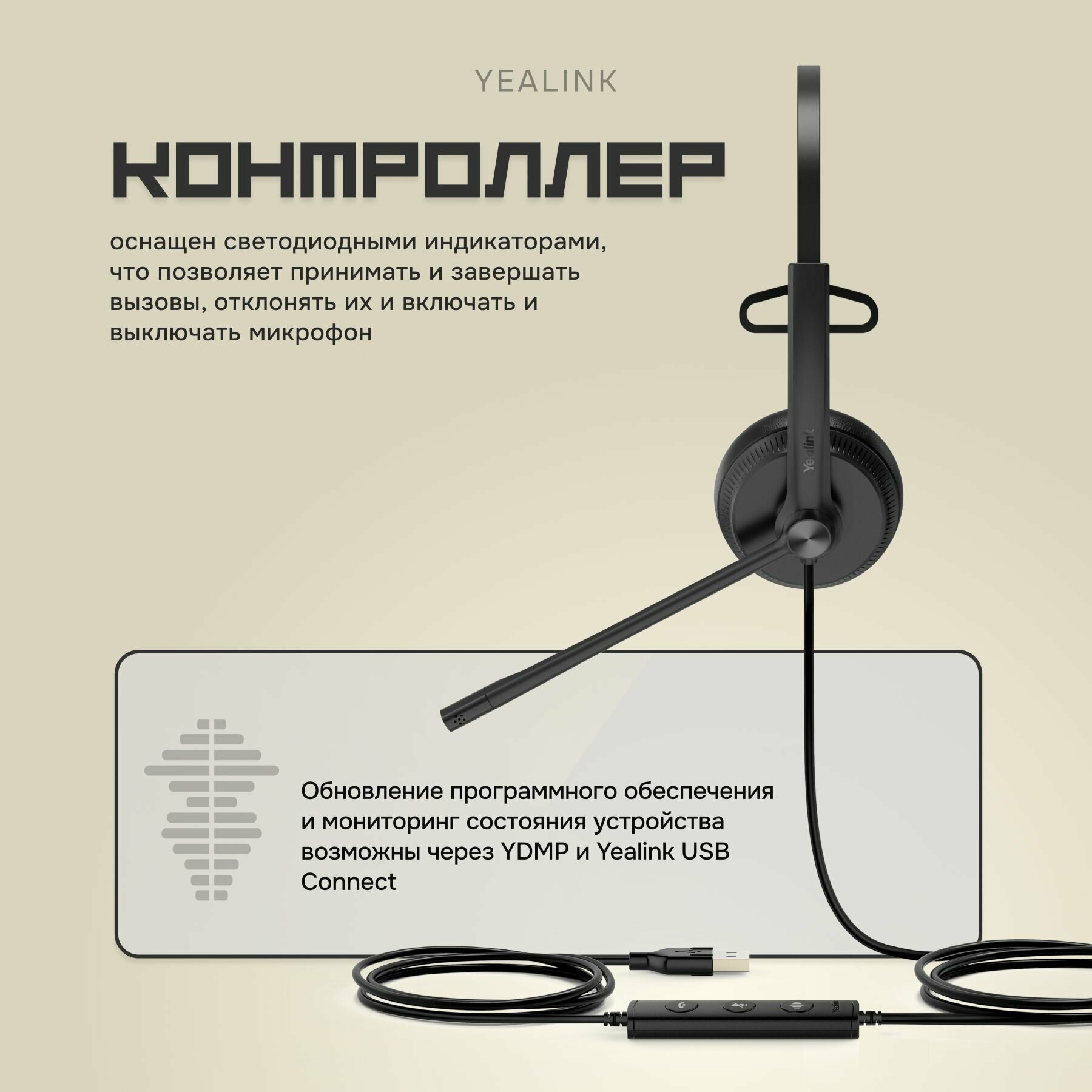 Гарнитура головная Yealink UH34 Mono UC Моно, Проводная, HD звук, USB, шт