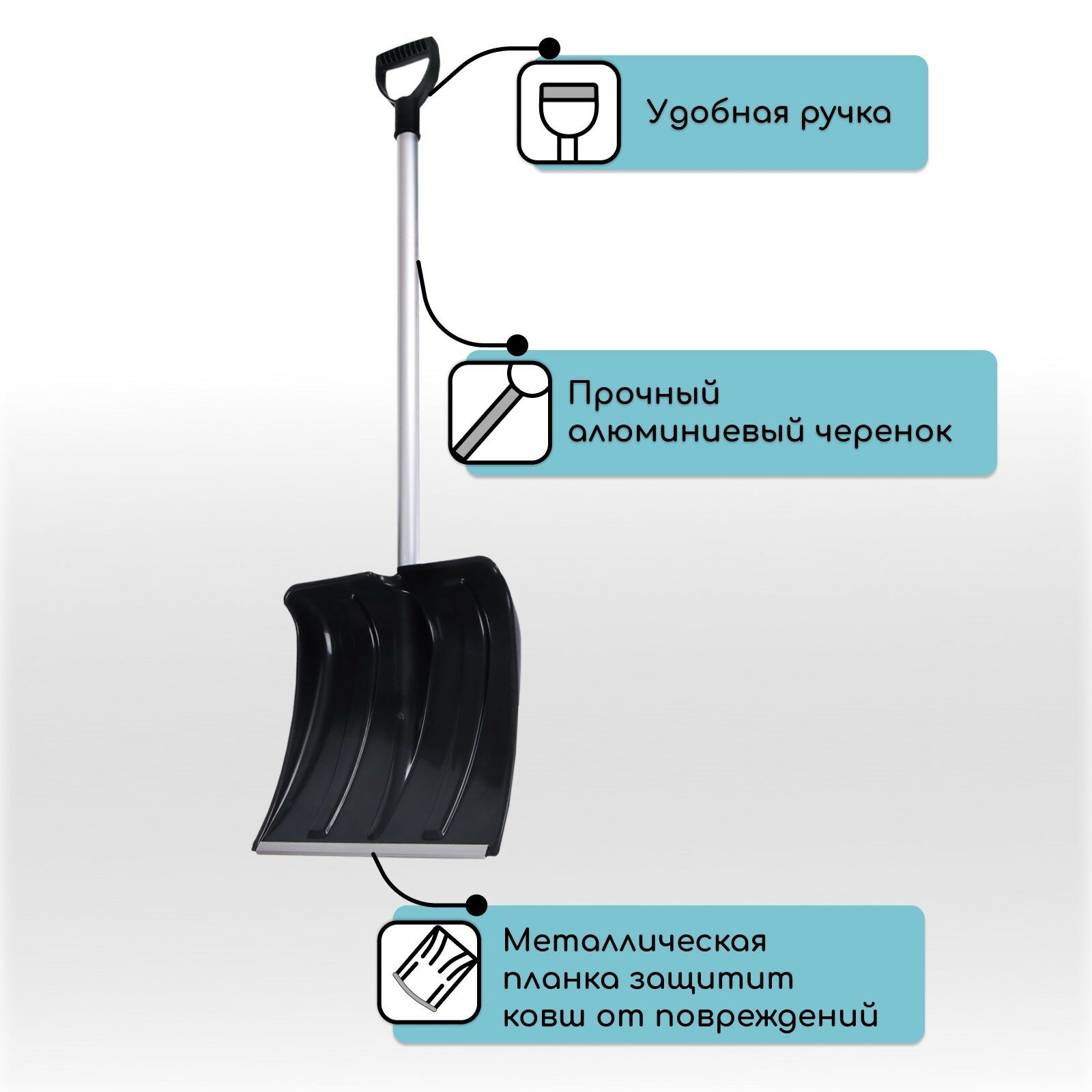 СохранитьЛопата пластиковая 380х380 мм, с алюминиевым черенком, с алюминиевой планкой, морозостойкая "Снегов интересное:
