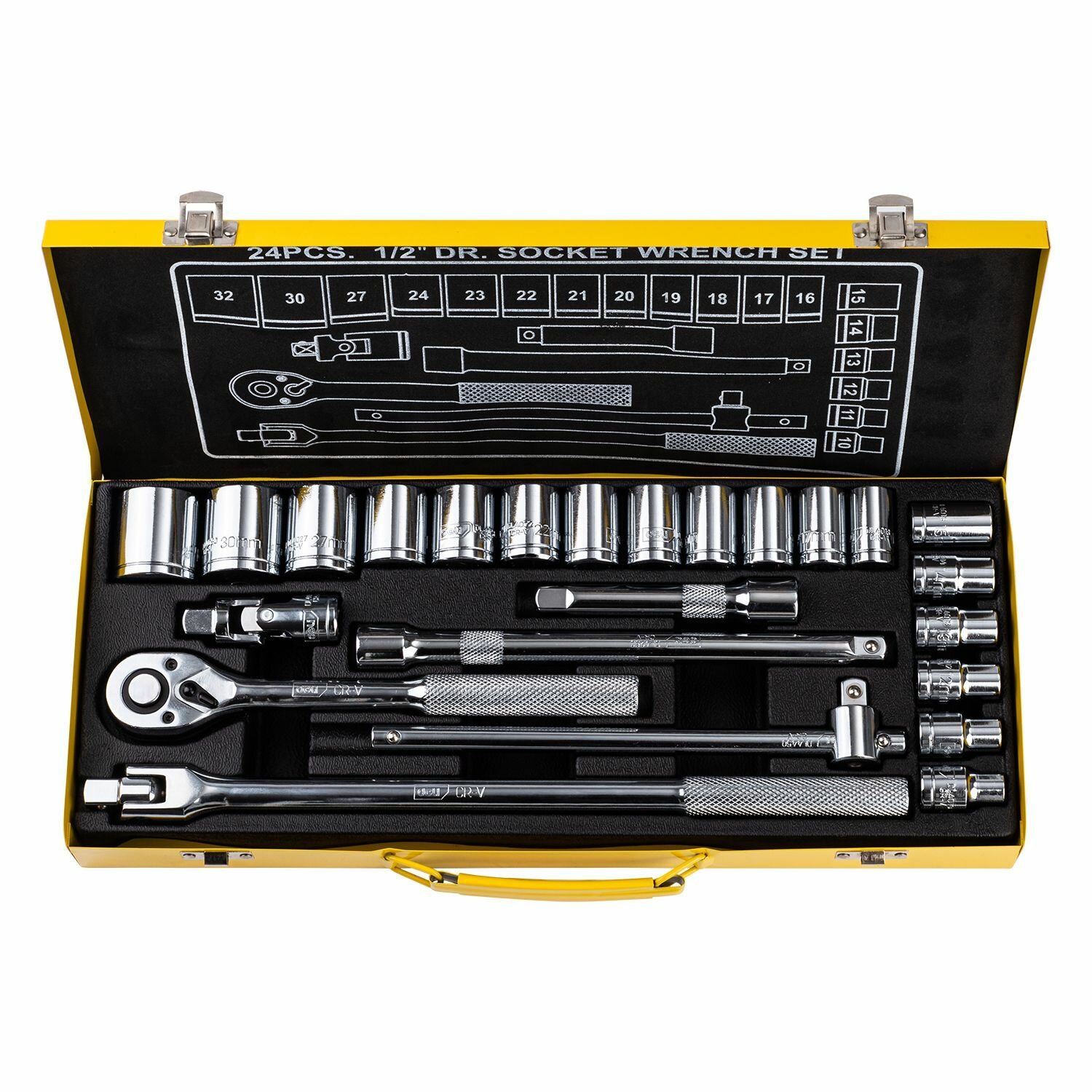 Набор торцевых ключей 24 шт Deli DL2024T Материал: 50BV30. Набор инструментов 24 шт. включает в себя:Головка серии 12,5 мм, 17 шт. (10, 11, 12, 13, 14