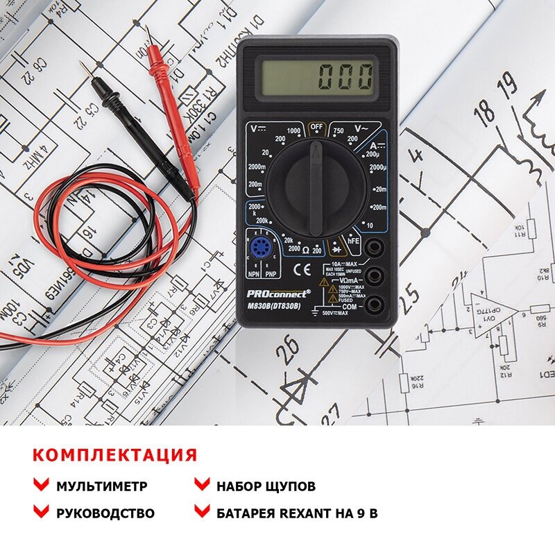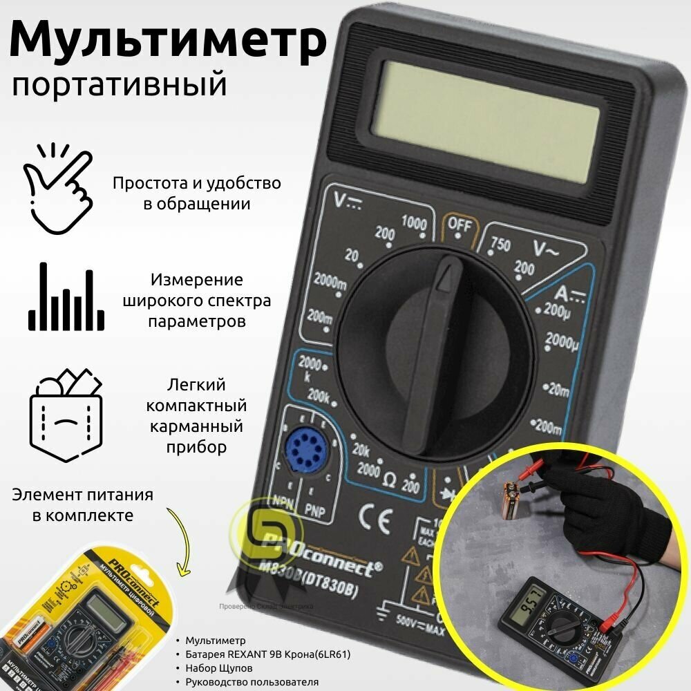 Мультиметр Proconnect M830B (DT830B) цифровой Rexant 13-3011