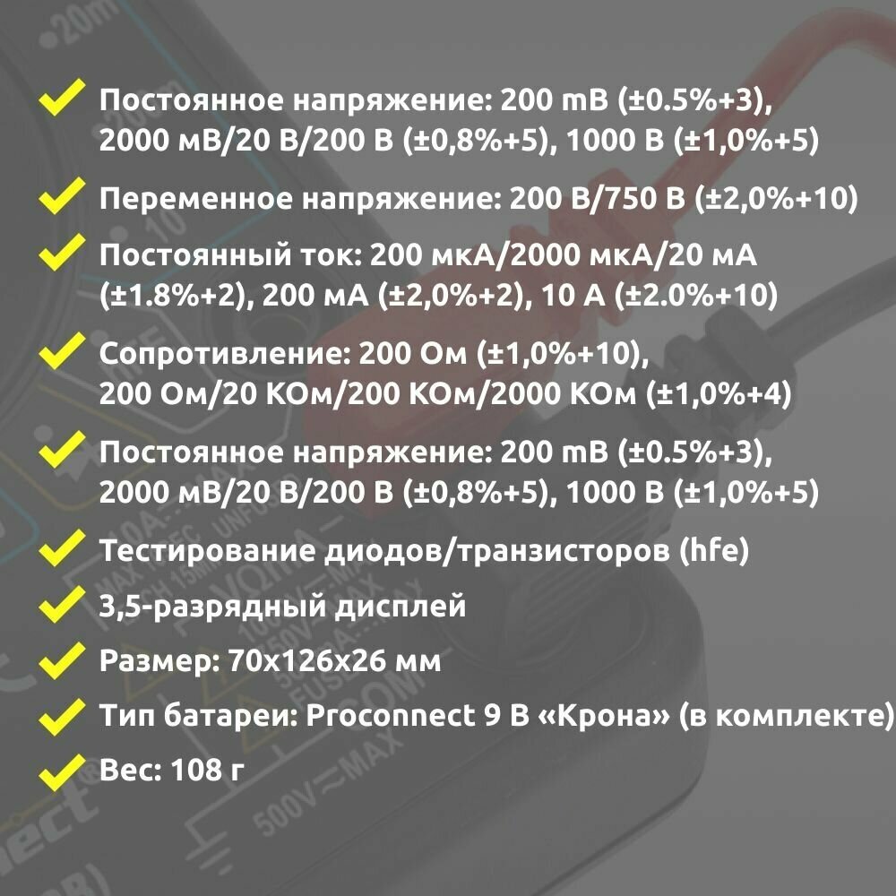 Мультиметр PROCONNECT (13-3011) M830B (DT830B) Портативный мультиметр