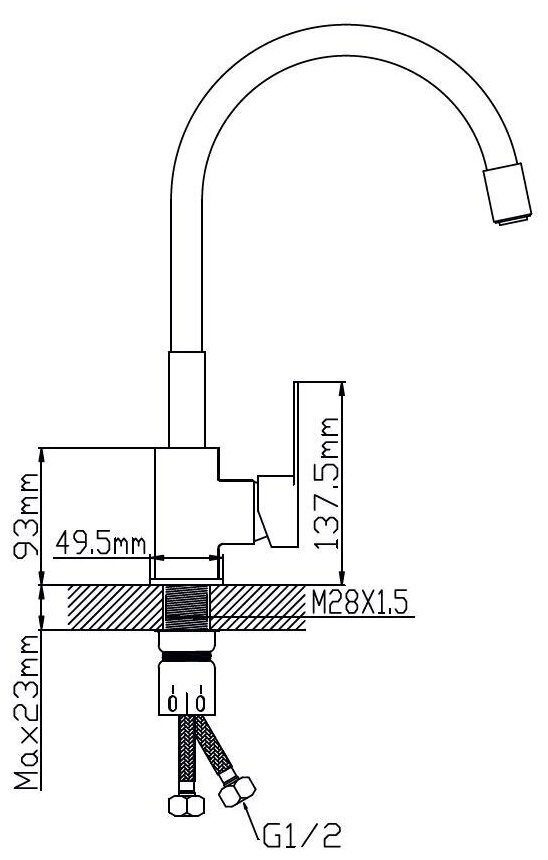 Смеситель Potato P58130S-19, серый, нержавеющая сталь, сатин, длина излива 497,5 мм