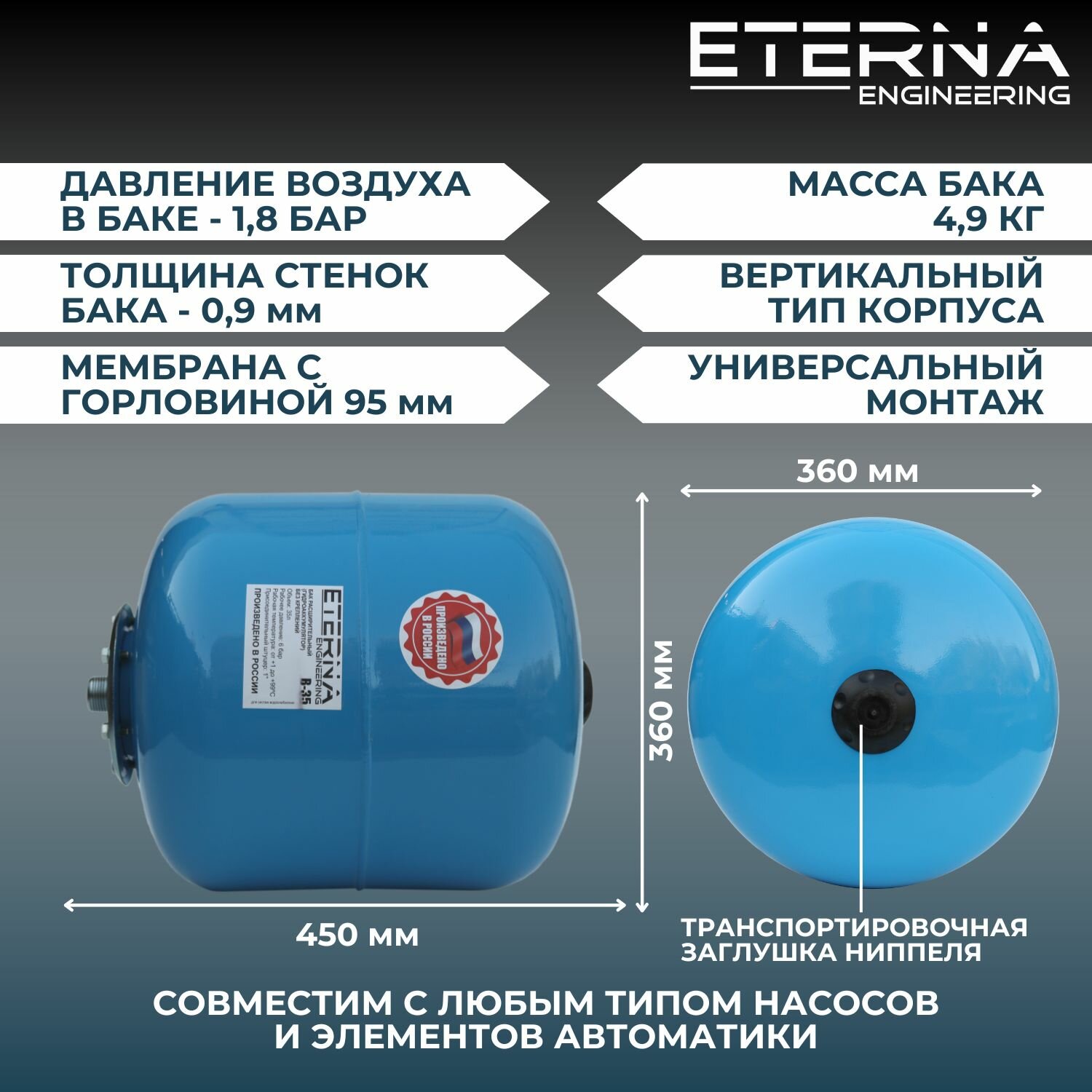 Купить Гидроаккумулятор для водоснабжения ETERNA В-35 (35 л, 1", вертикальный)
