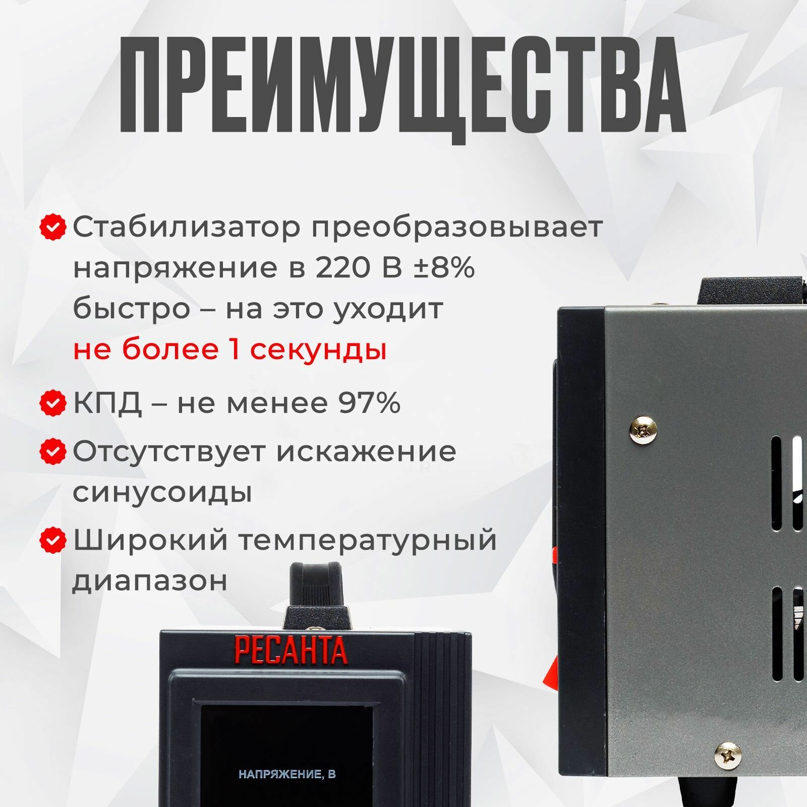живу в частном секторе, иногда случаются перепады входного напряжения, без стабилизатора не обойтись. Эта модель отличается быстродействием, выравнивает напряжение за доли секунды. Прибор удобный, есть ручка для переноски, яркий дисплей, крупные цифры, не нужно присматриваться.