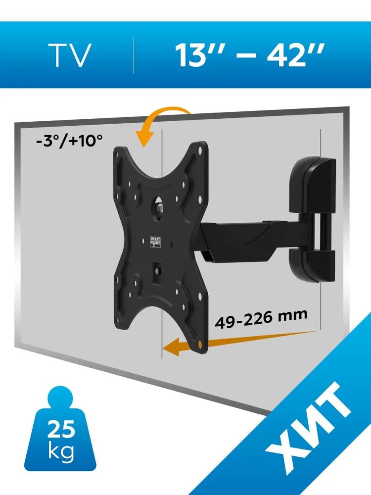 Настенное крепление для LED/LCD телевизоров SMARTMOUNT TANGO-23, диагональ 13-42 дюймов, черный интересное: