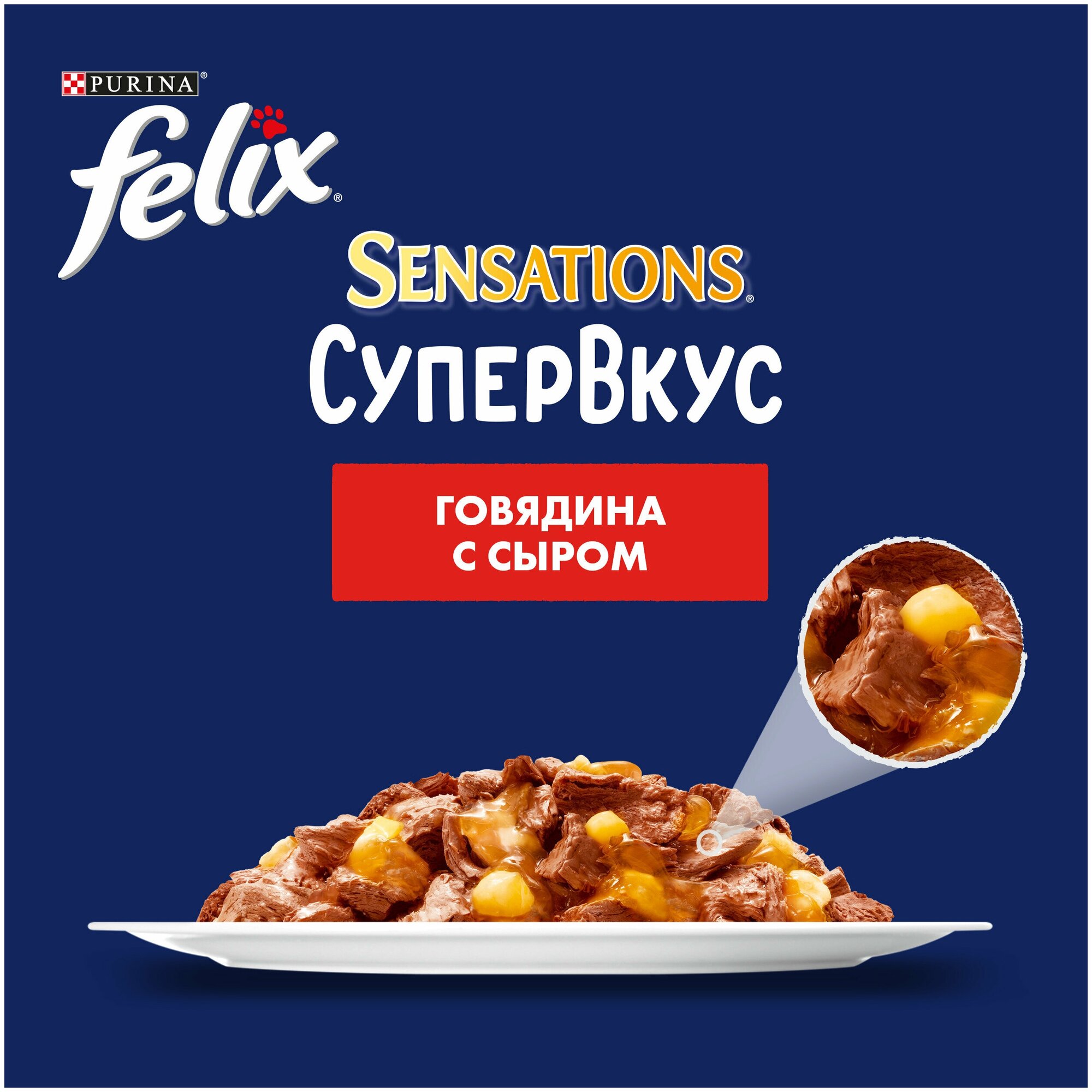 Felix Sensations Супервкус пауч для взрослых кошек (кусочки в желе) Говядина и сыр, 75 г. упаковка 26 шт