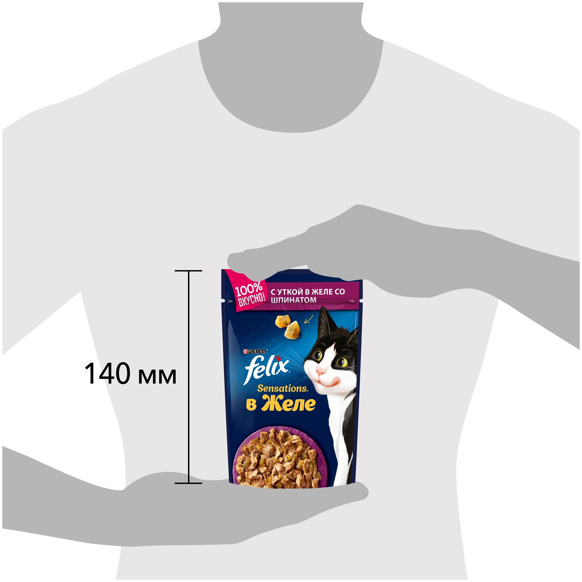 Влажный корм FELIX Sensations для кошек, утка/шпинат в желе, пауч, 85 г