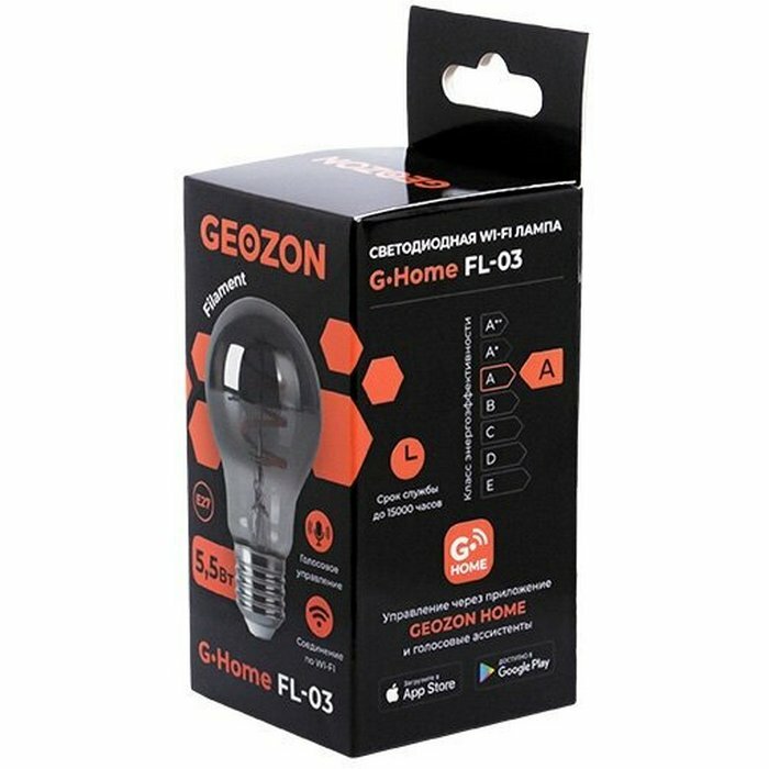 Умная филаментная лампочка Geozon с Wi-Fi, E27, 5.5 Вт, 450 Лм, 2200 K, 5500 К, 220-250 В / 50-60 Гц
