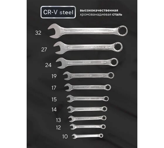 Набор ключей комбинированных 10пр(10,12-15,17,19,24,27,32мм)на полотне