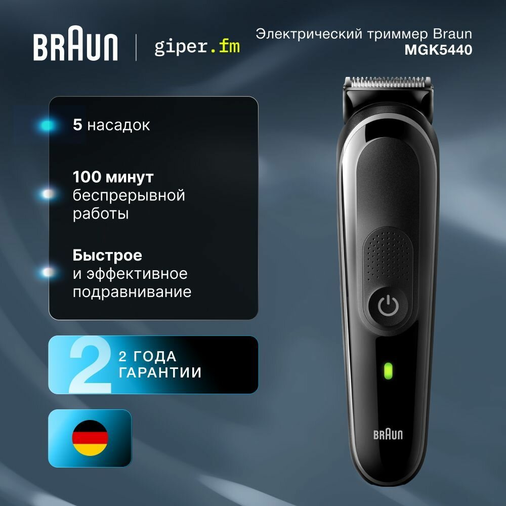 Триммер универсальный Braun MGK5440, 5 насадок, 13 настроек длины, светодиодный индикатор заряда, черный