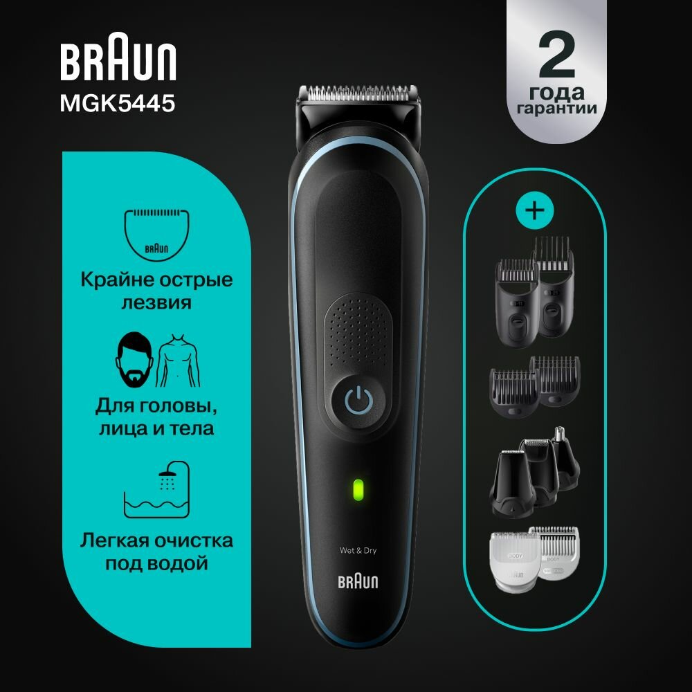 Триммер универсальный Braun MGK5440, 5 насадок, 13 настроек длины, светодиодный индикатор заряда, черный