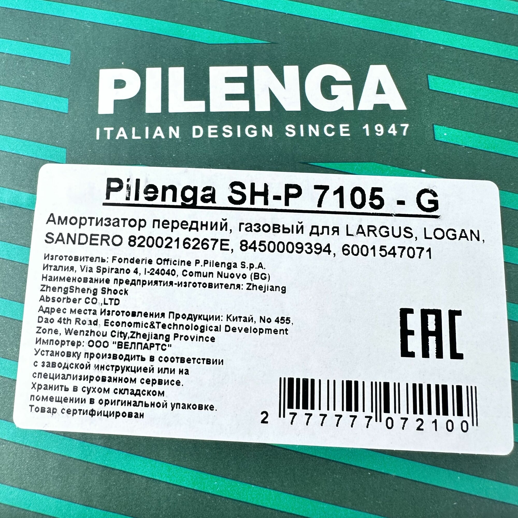 Амортизатор Lada Largus Передний Газовый Pilenga Sh-P 7105 - G PILENGA арт. SH-P 7105 - G