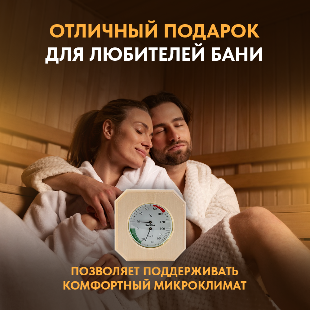 Термогигрометр для бани и сауны, контрастная древесина, от 0°С до +120°С