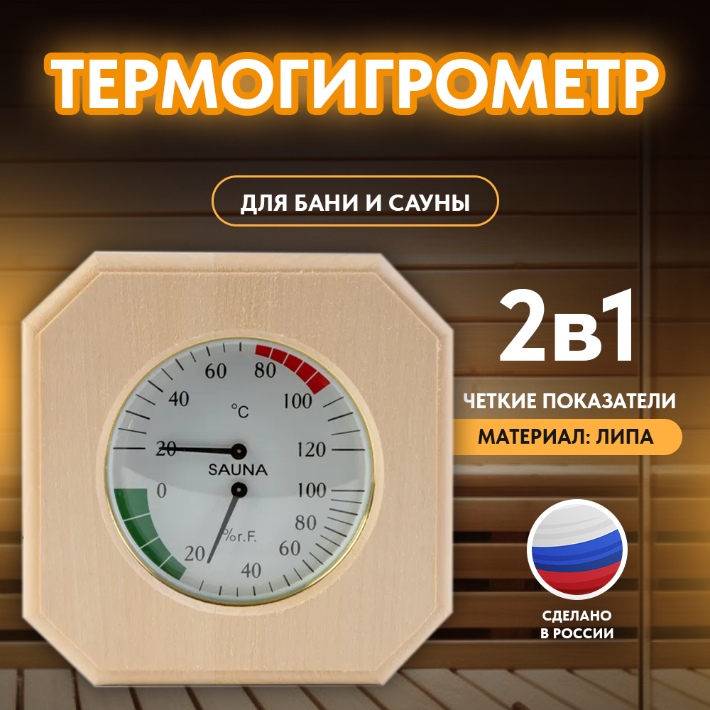 Термогигрометр для бани и сауны, ТН-20-L, липа, от 0°С до +120°С