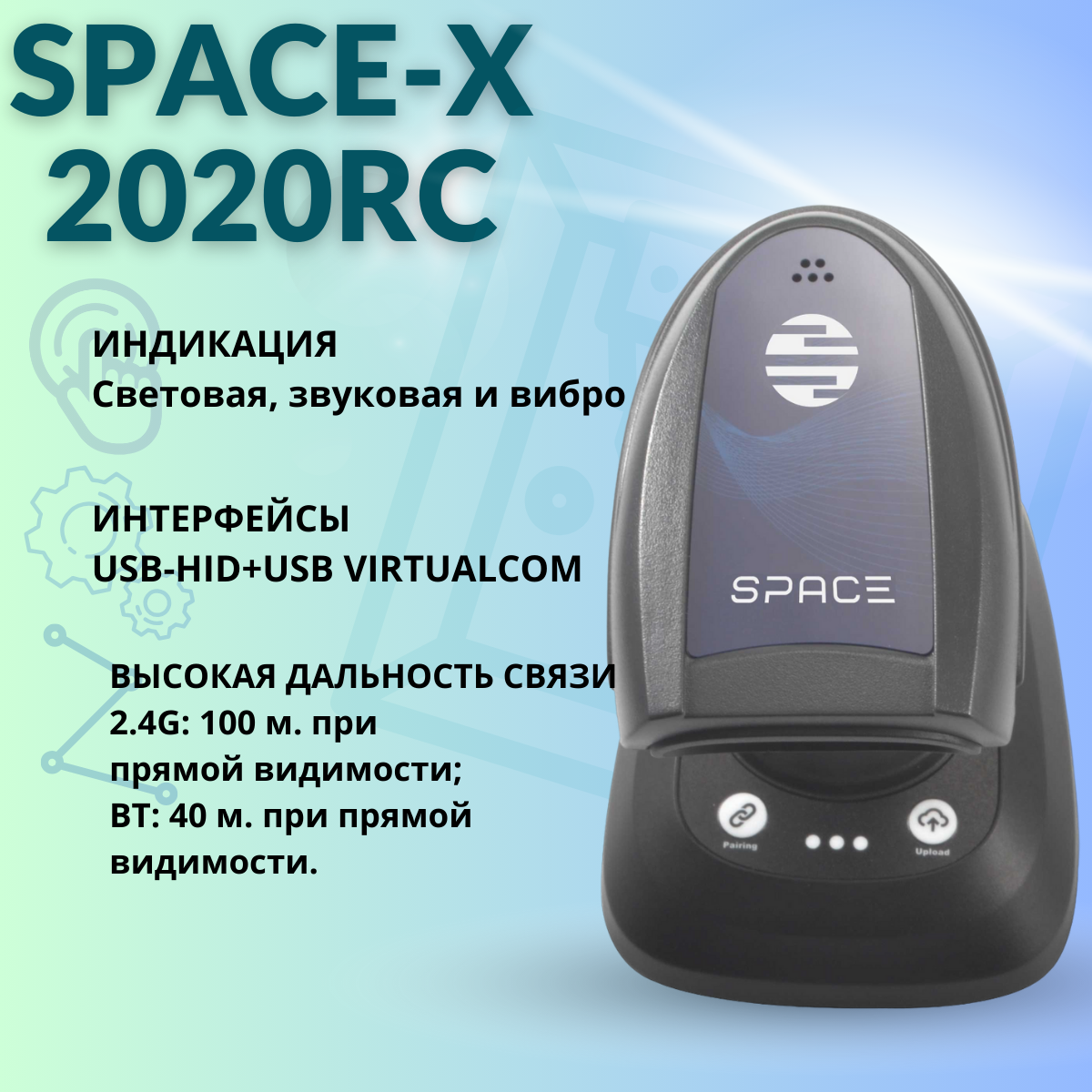 Сканер штрих-кода 2D SPACE X-2020RC-2D-BT, беспроводной, с базой в комплекте