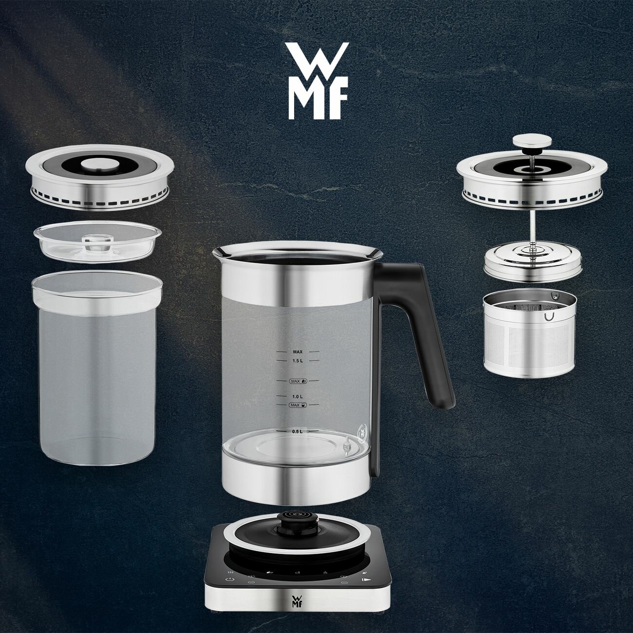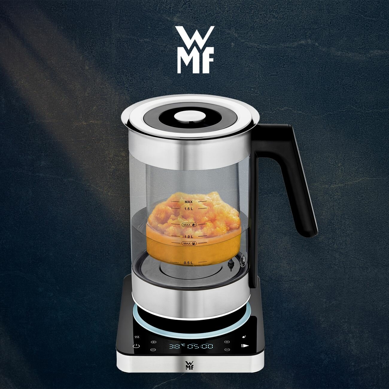 Многофункциональный чайник WMF Lumero 1.6 л, из нержавеющей стали Cromargan, LED подсветка, функция поддержания температуры