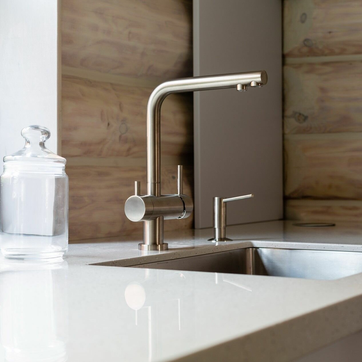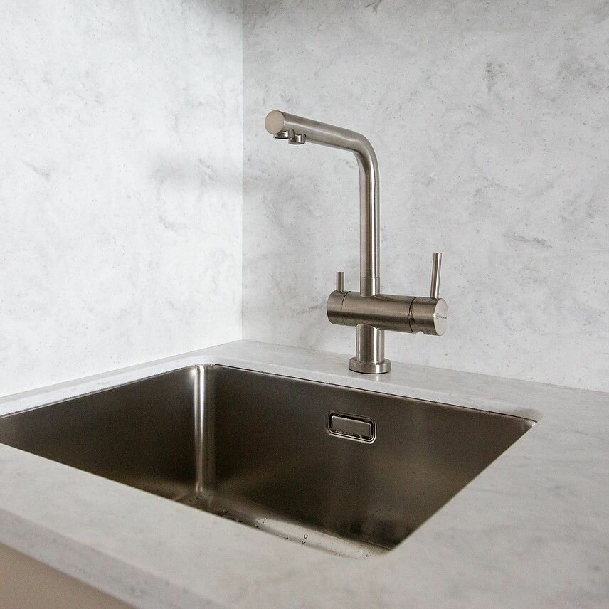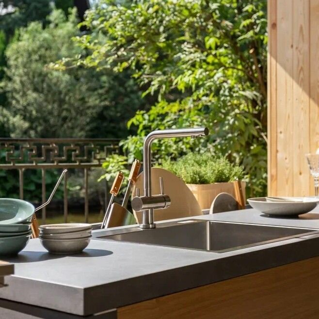 | Плюсы: | Стильный, встроенный излив под фильтрованную воду |