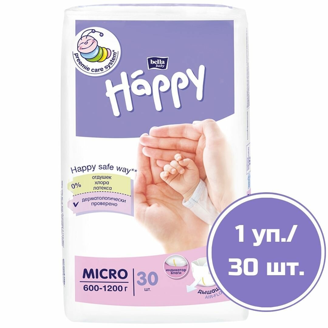 Детские подгузники для недоношенных малышей bella baby Happy в размере MICRO (600-1200 г), 30 шт. интересное:
