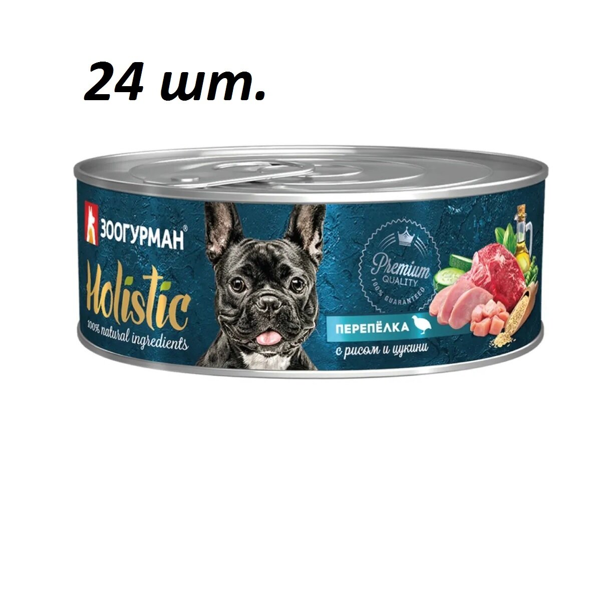 Зоогурман Holistic для собак Перепёлка с рисом и цукини, консервы 100г (24 банки)