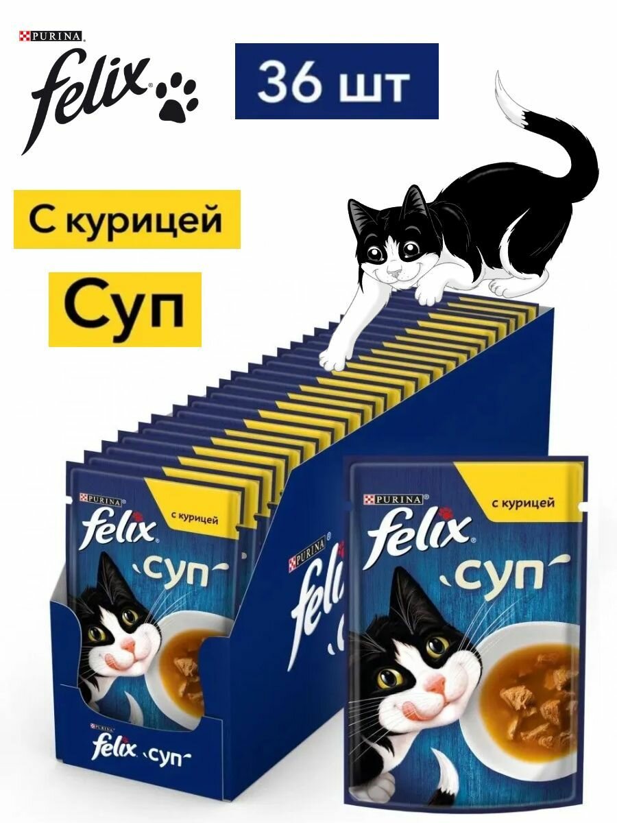 Купить Felix влажный корм для взрослых кошек суп с курицей в паучах - 48 г х 36 шт