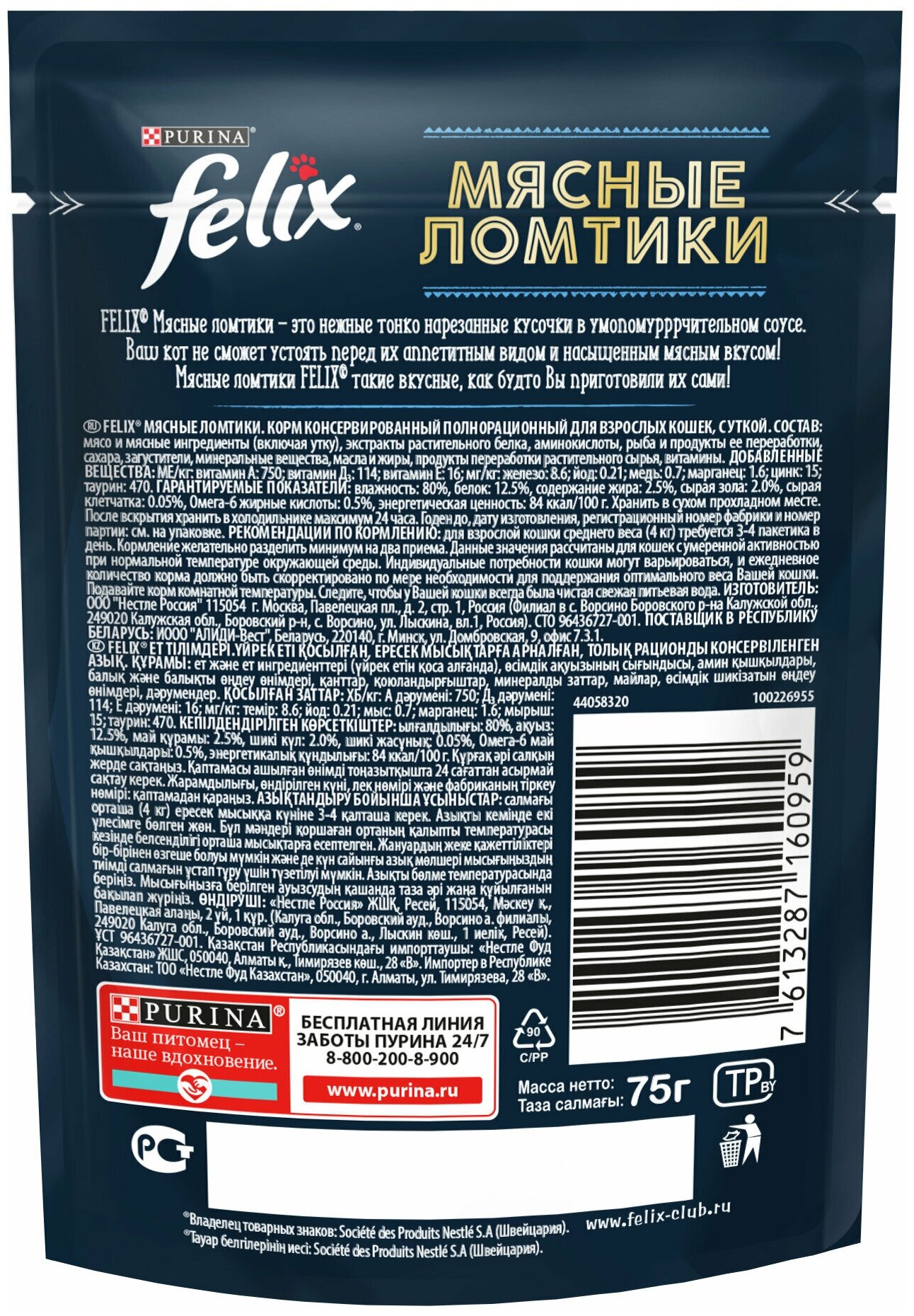 | Плюсы: | Влажный корм для кошек Felix Мясные ломтики Усики оближешь с уткой. х 75 г (кусочки в соусе)