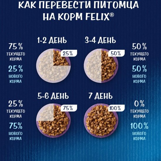 | Отзыв: | у мамы 2 кота, едят наперегонки, едят только Феликс, заказала им упаковку, надеюсь на неделю хватит) почём то предпочитают именно кролика |