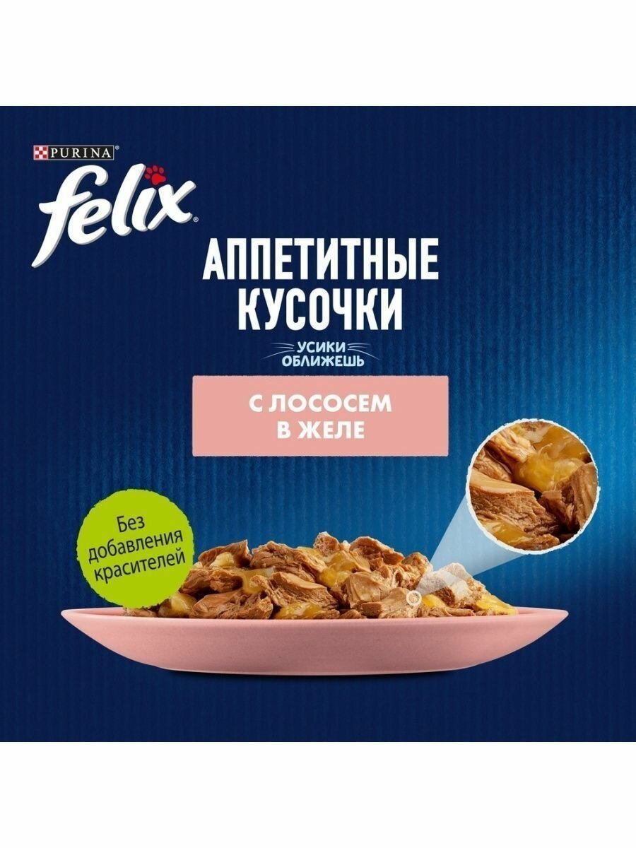 Влажный корм для кошек Felix Аппетитные кусочки, лосось в желе, 75 г x 26 шт