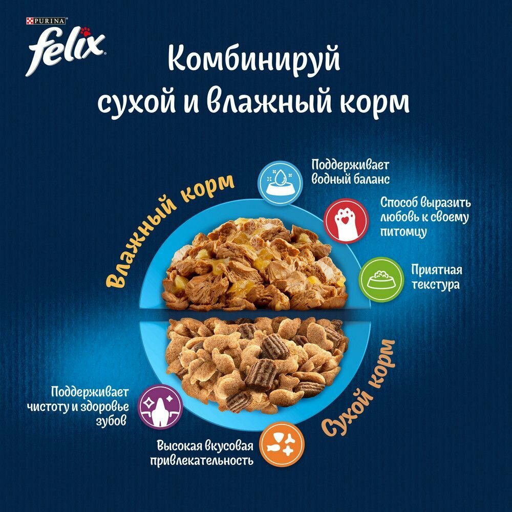 Корм для кошек влажный феликс говядина птица 26 штук по 75 г