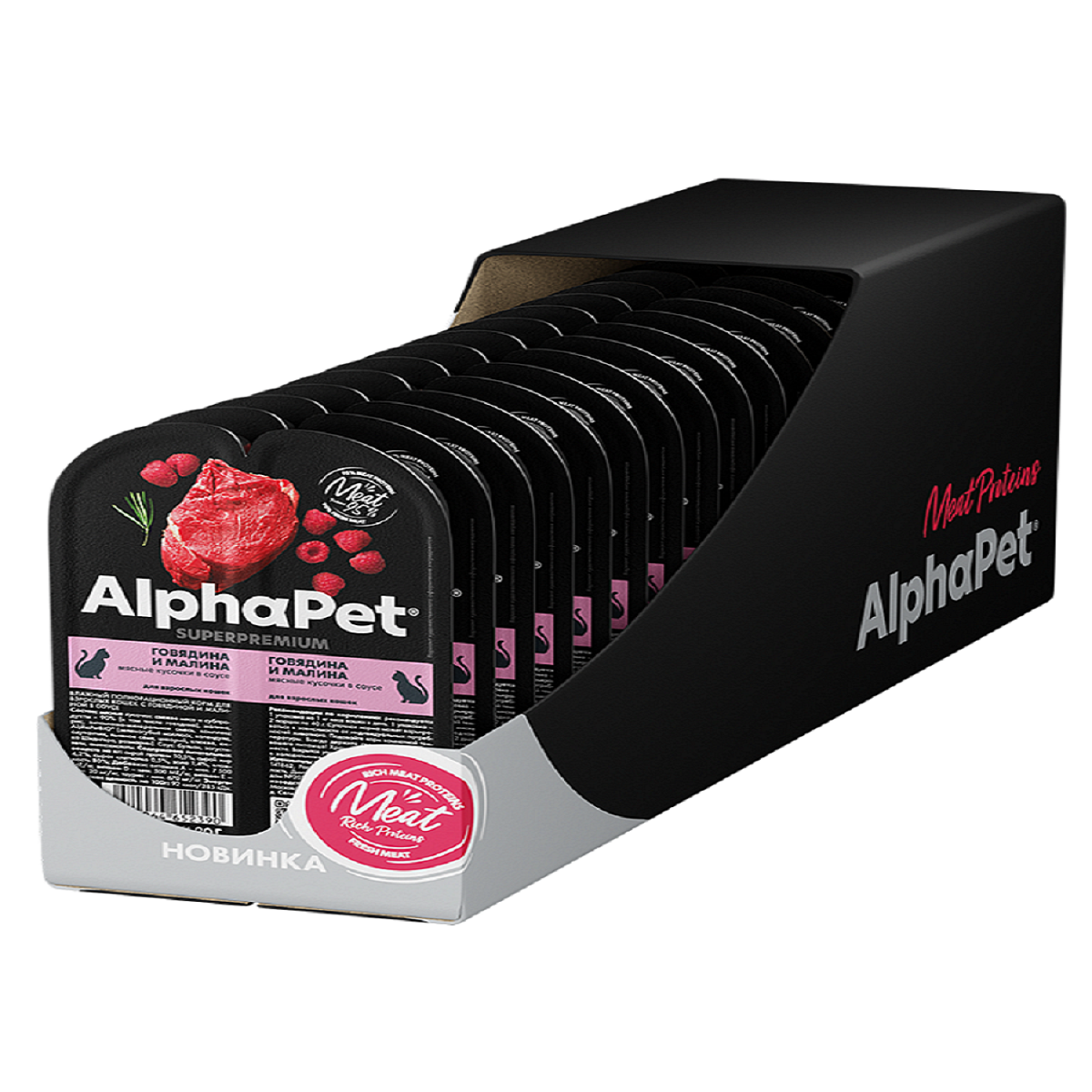 Купить Влажный корм AlphaPet Superpremium пауч для взрослых кошек, мясные кусочки в соусе Говядина и малина, 15 шт х 80 гр