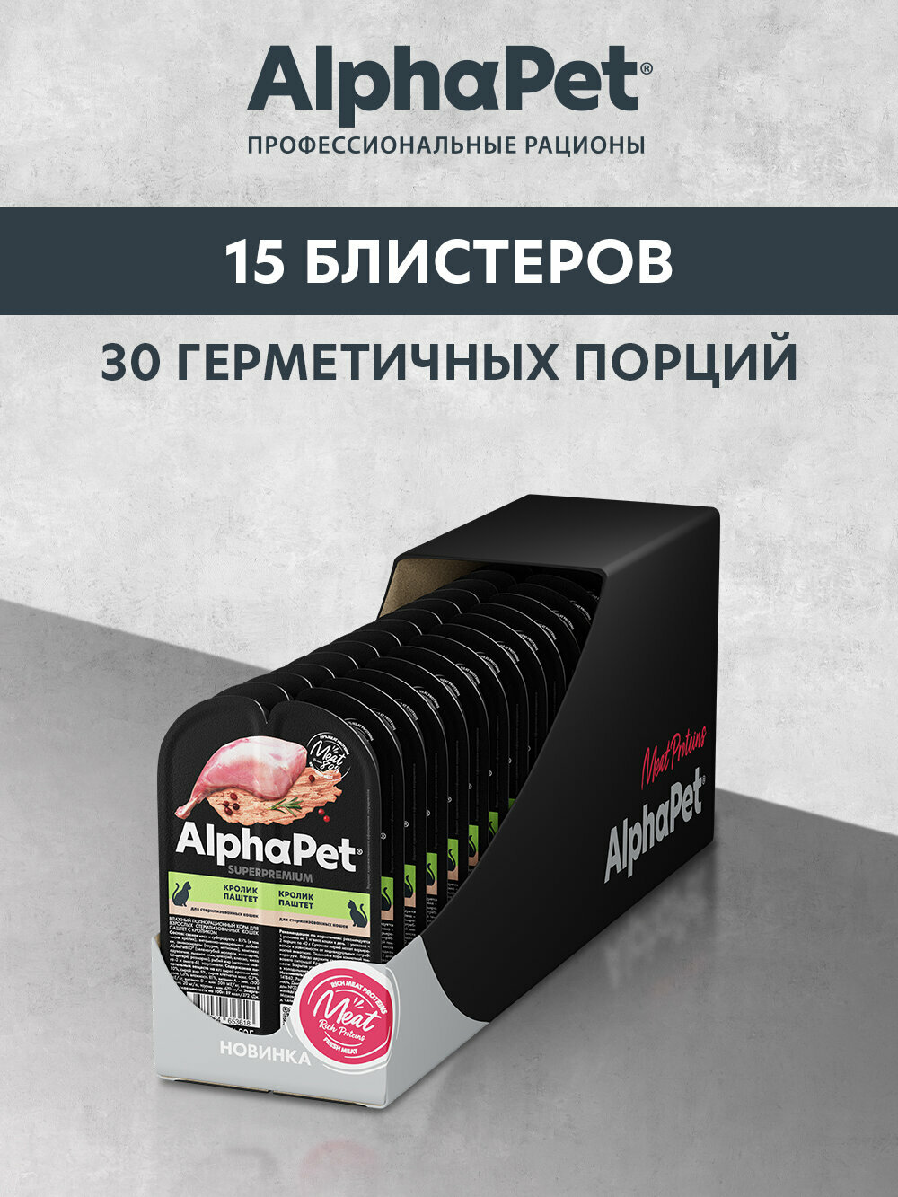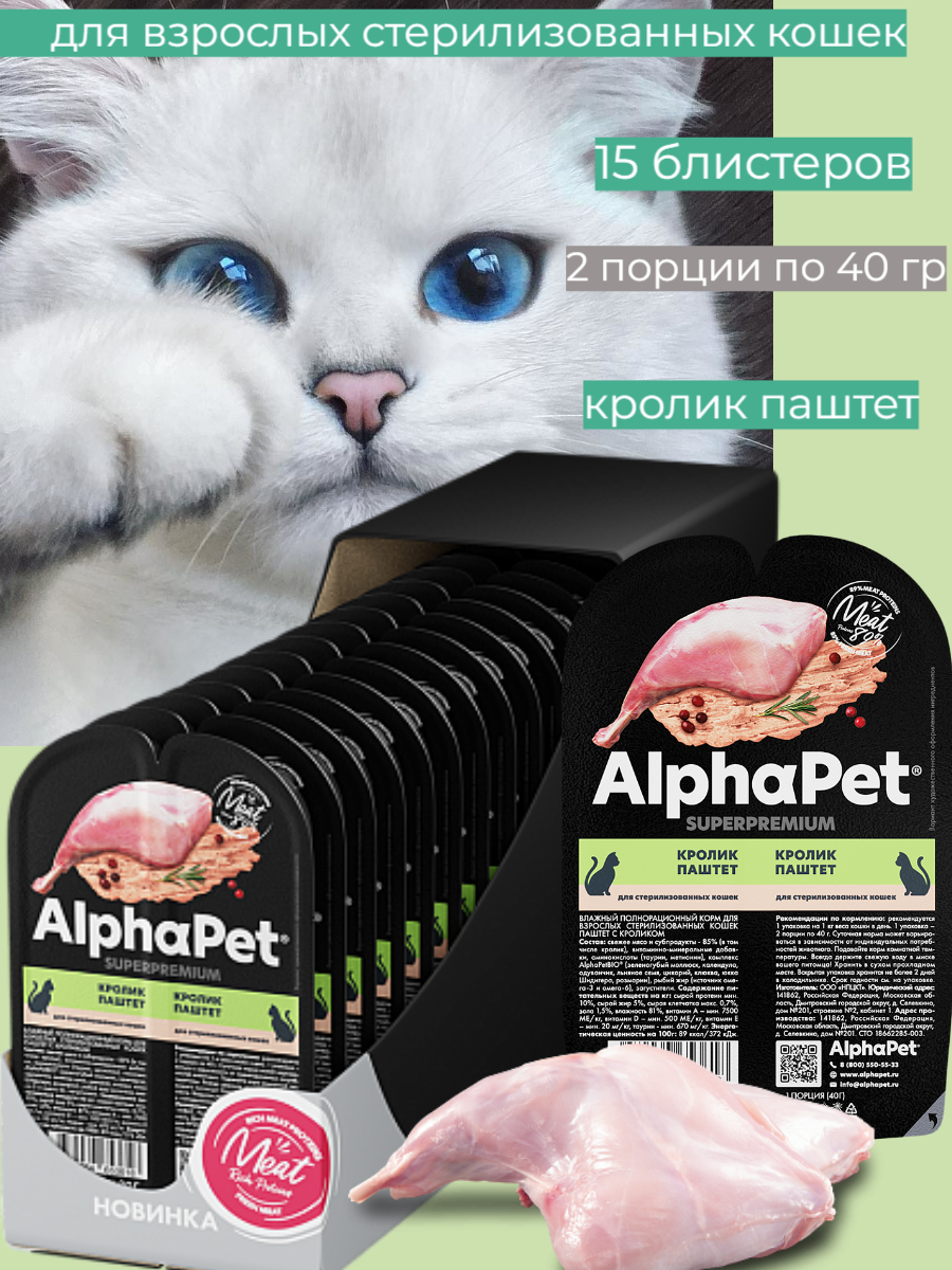 Купить AlphaPet Superpremium Влажный корм для взрослых стерилизованных кошек паштет Кролик 15шт по 80 гр