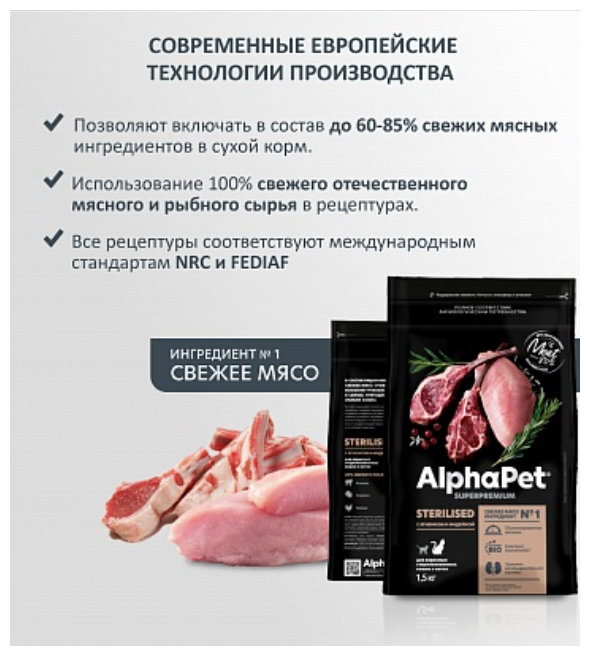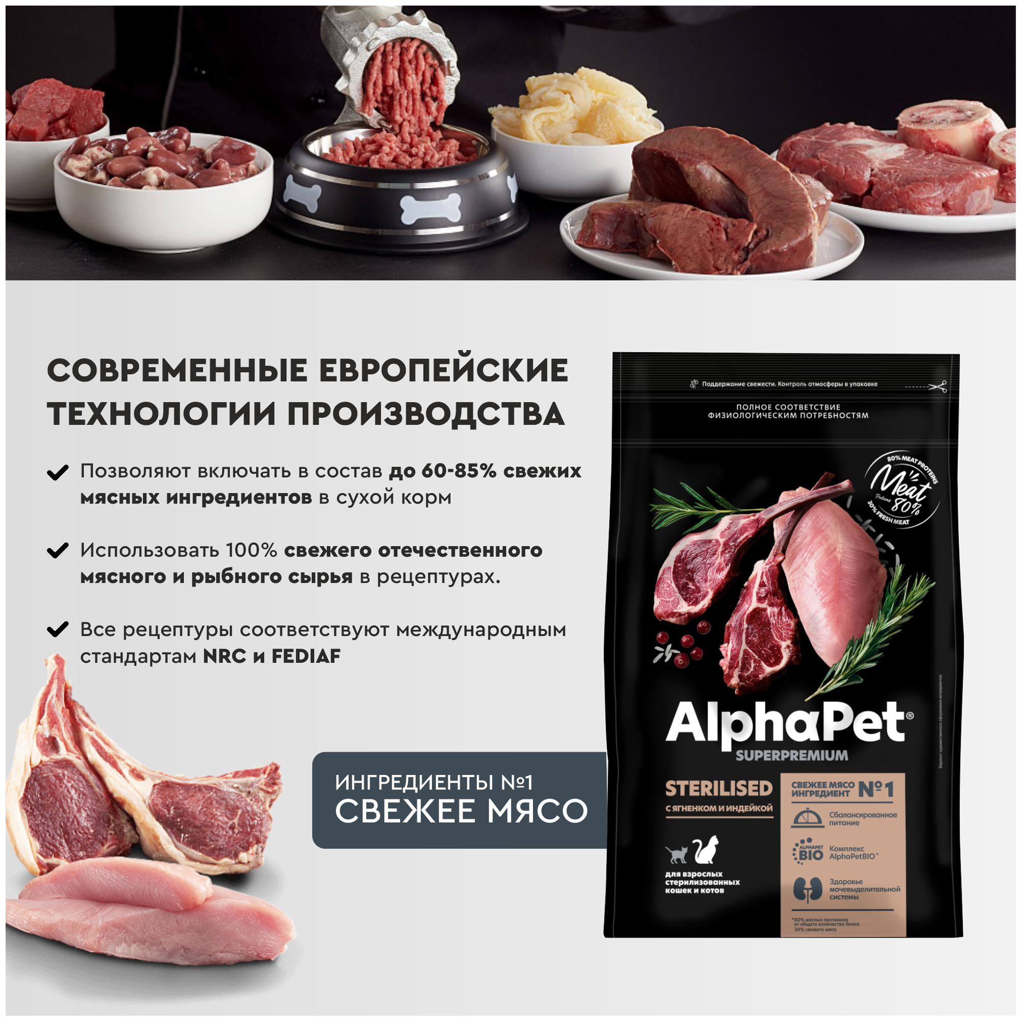 Купить Сухой полнорационный корм AlphaPet (АльфаПет) Superpremium для взрослых стерилизованных кошек и котов, с ягненком и индейкой, 1,5 кг