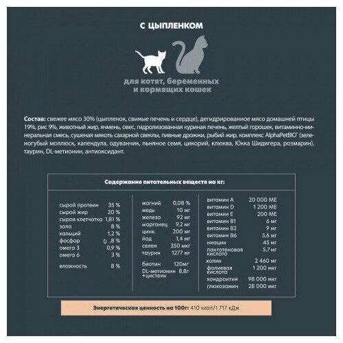 Сухой корм AlphaPet полнорационный Superpremium с цыпленком, для котят, беременных и кормящих кошек, 1,5 кг
