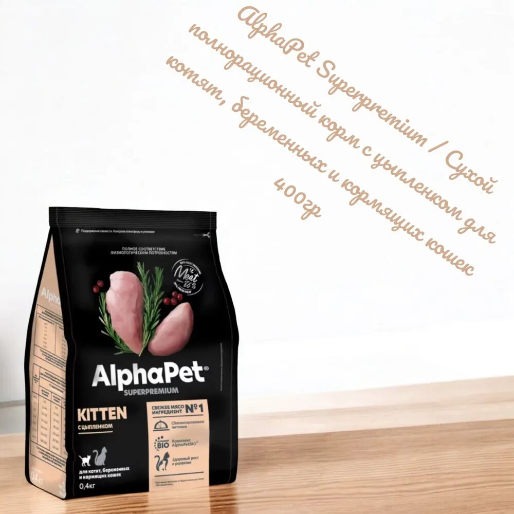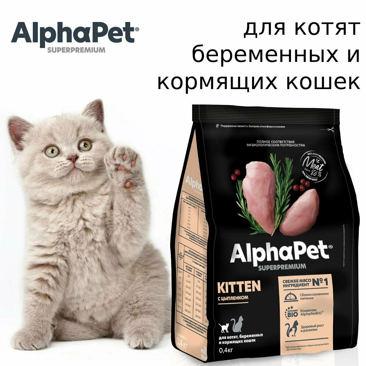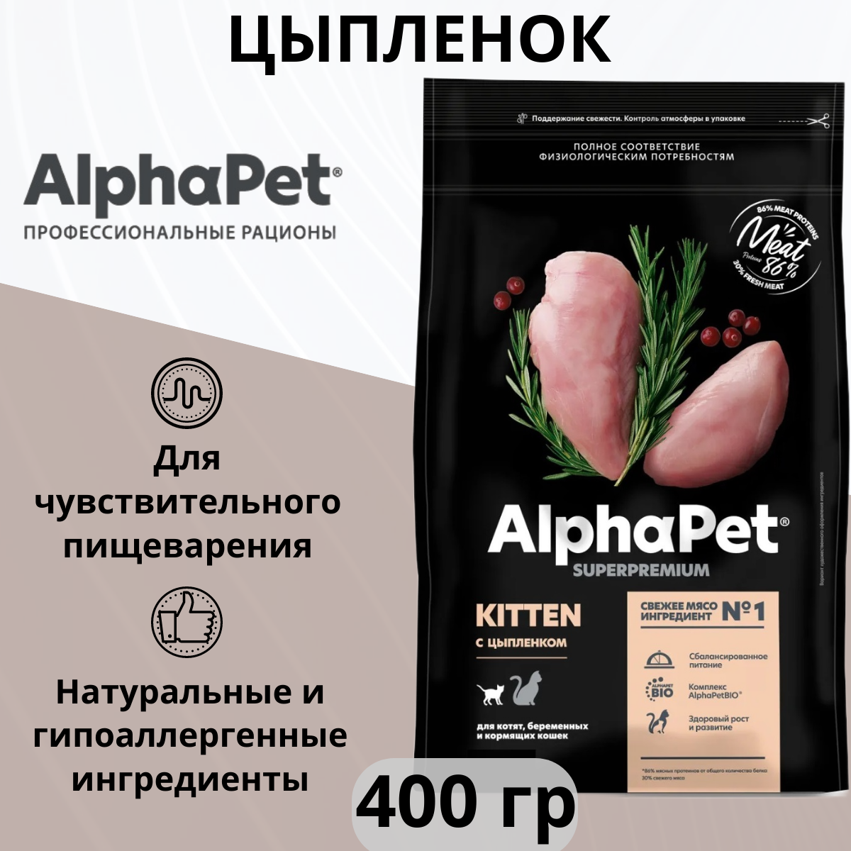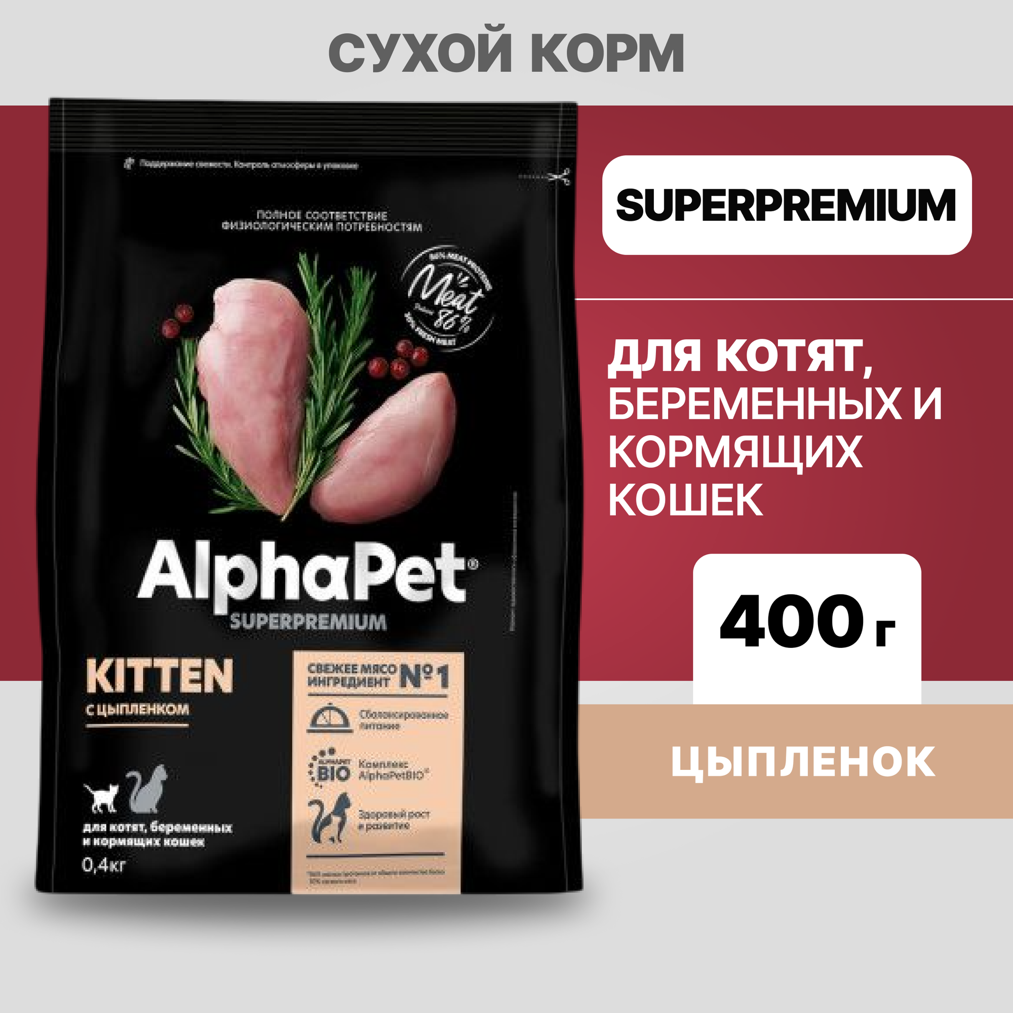 Сухой полнорационный корм AlphaPet Superpremium с цыпленком для котят, беременных и кормящих кошек 400гр