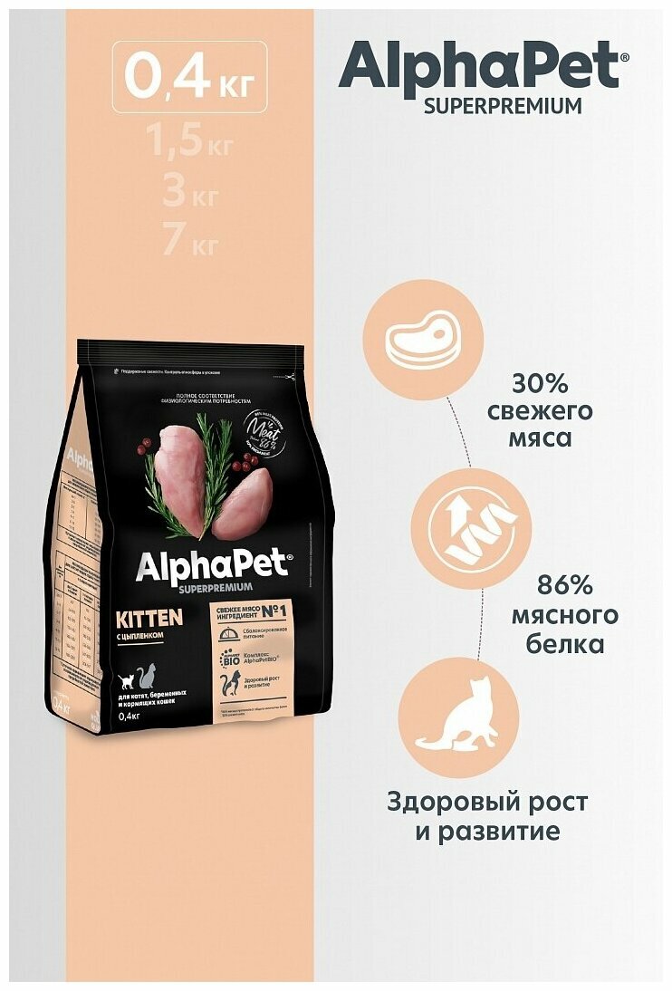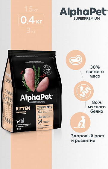 ALPHAPET SUPERPREMIUM 3 кг сухой корм для котят, беременных и кормящих кошек с цыпленком 1х3, 82957 (1 шт)