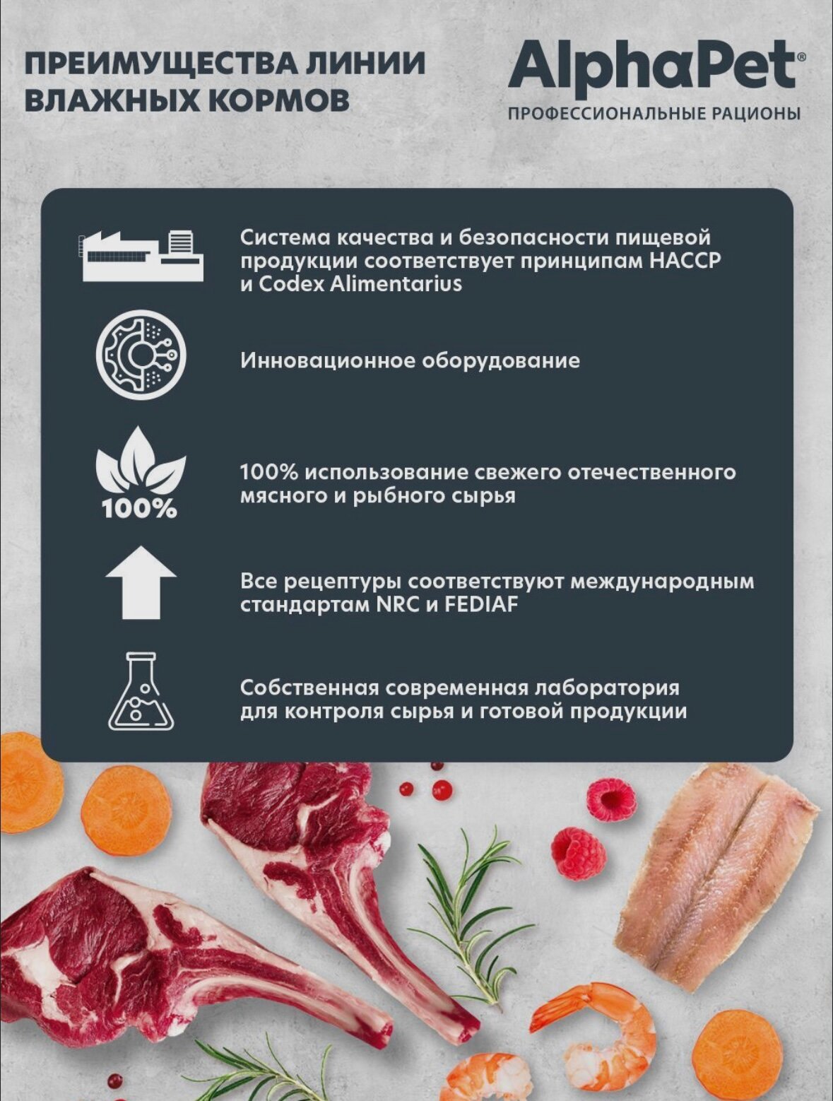 ALPHAPET SUPERPREMIUM 80 гр ламистер влажный корм для стерилизованных кошек анчоусы и креветки 45 шт