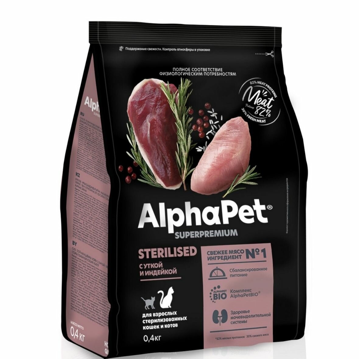 Купить Корм AlphaPet Superpremium для стерилизованных кошек, c уткой и индейкой, 400 г