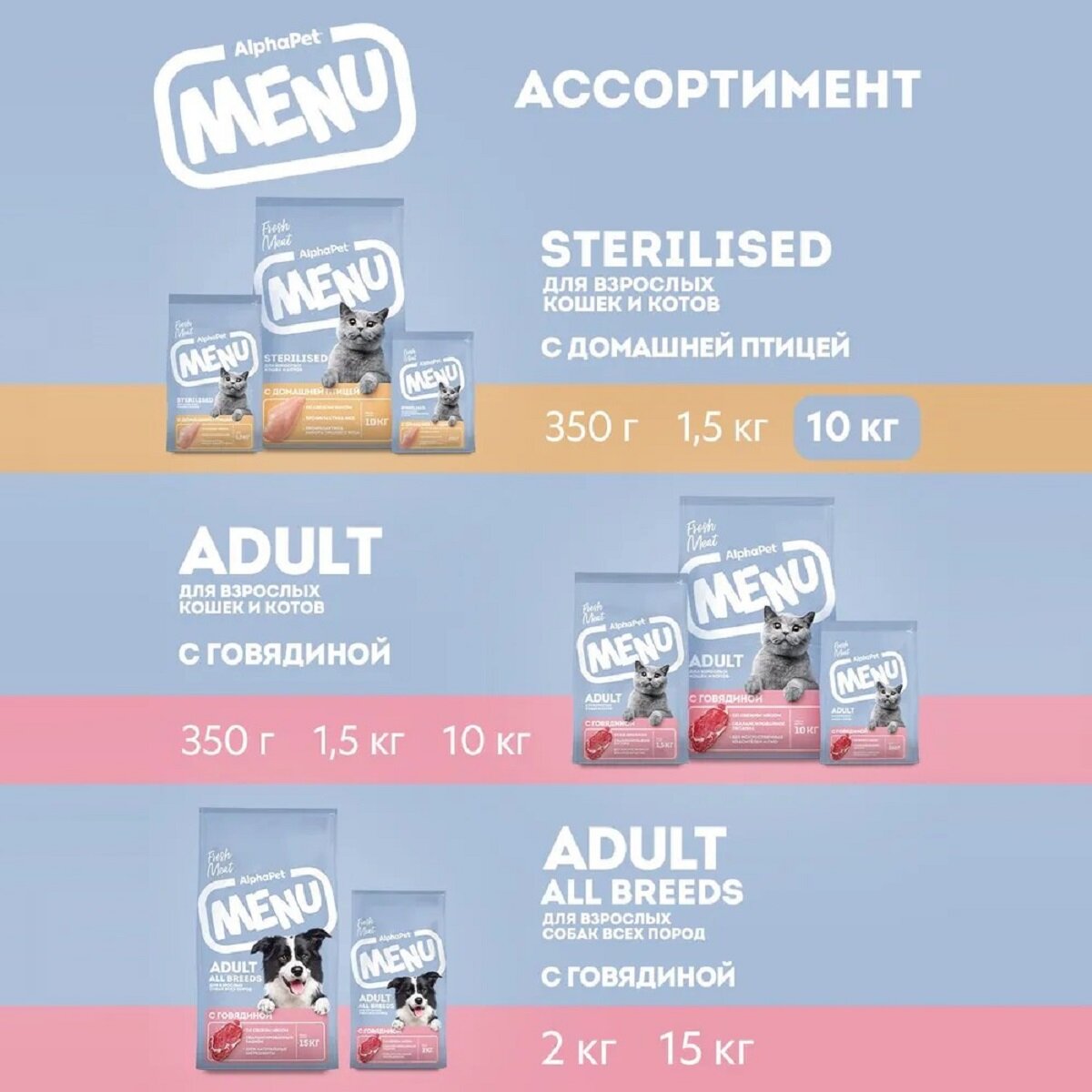 Ниже Вы можете прочитать отзывы на AlphaPet MENU сухой корм стерилизованным кошкам с домашней Птицей 10кг, ознакомится с подробными характеристиками, посмотреть интересные обзоры и фотографии на AlphaPet MENU сухой корм стерилизованным кошкам с домашней Птицей 10кг.