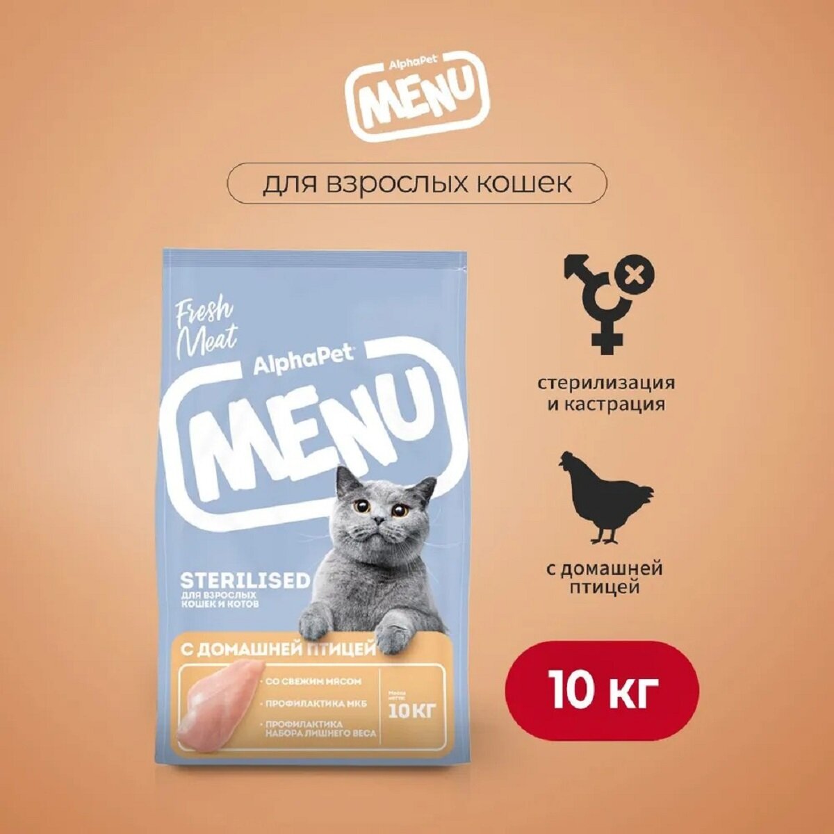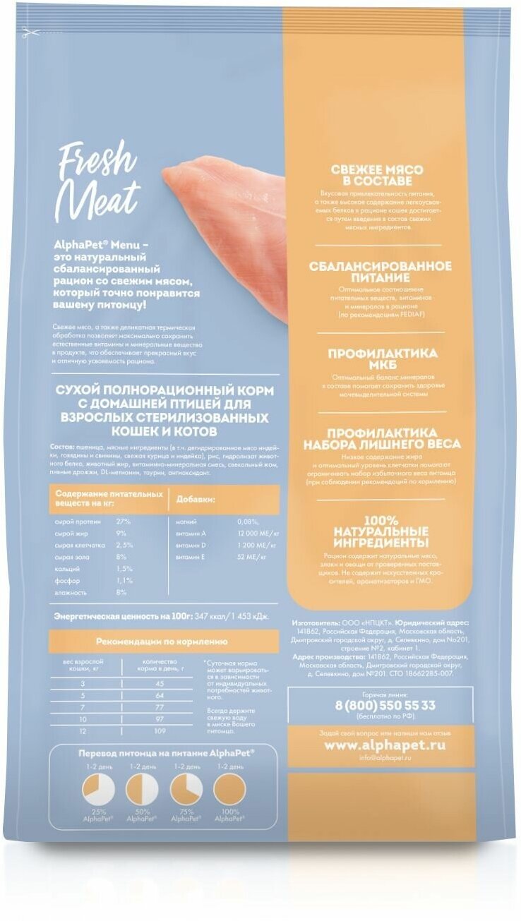 Купить AlphaPet MENU сухой корм стерилизованным кошкам с домашней Птицей 10кг