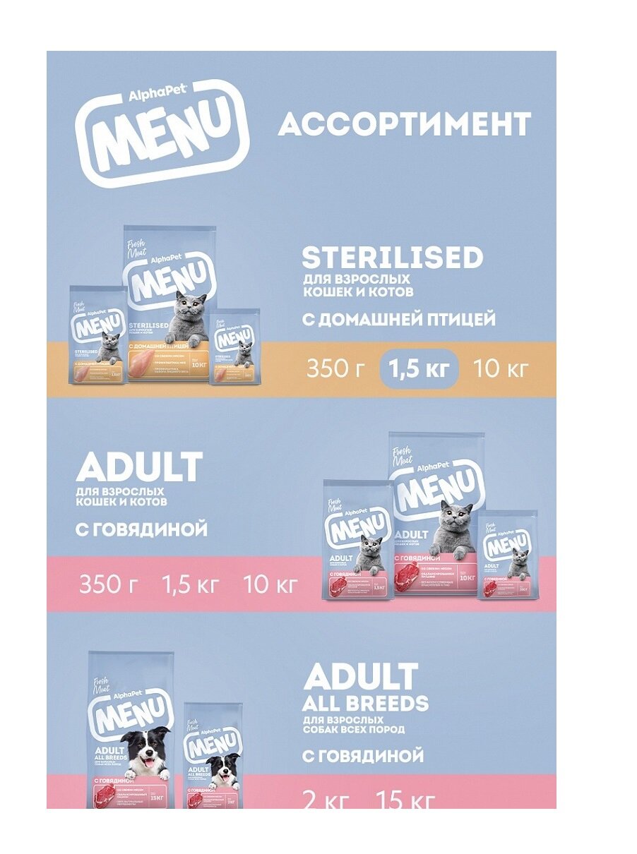 Сухой корм для кастрированных котов и стерилизованных кошек AlphaPet MENU с домашней птицей, 1,5кг