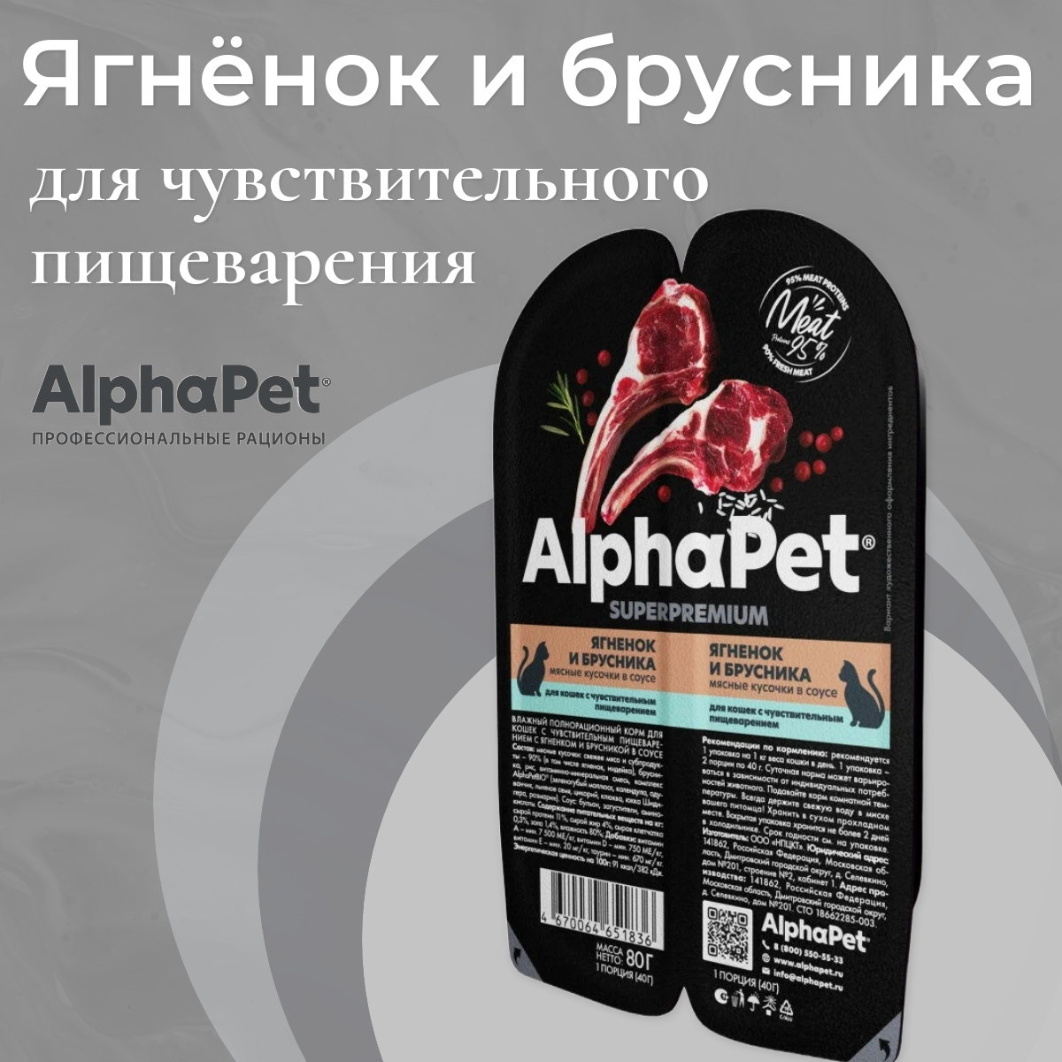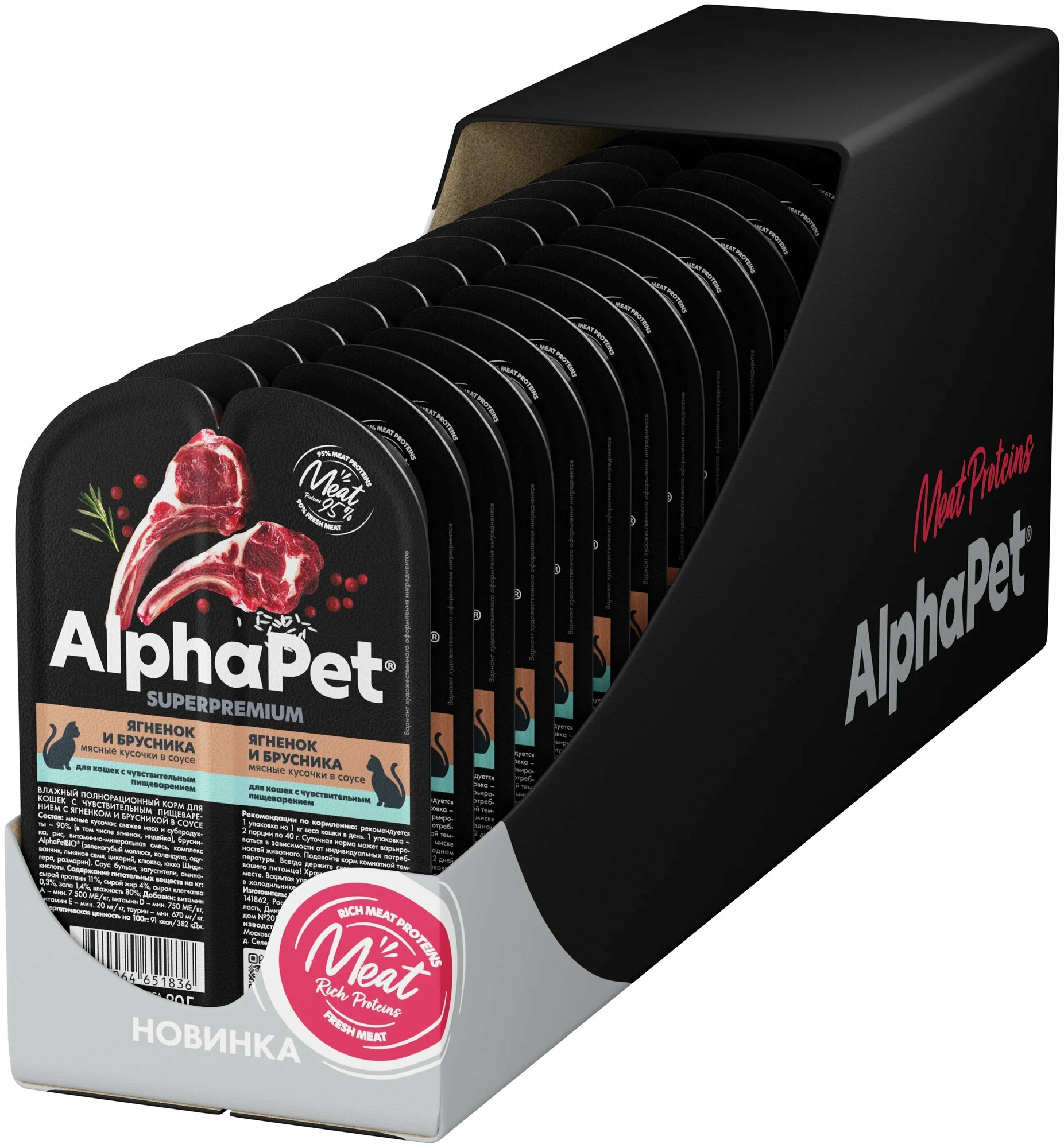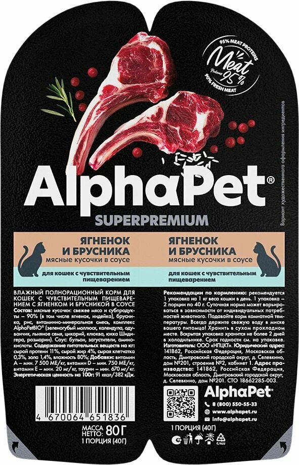 Купить Влажный корм для кошек с чувствительным пищеварением AlphaPet Superpremium "Ягненок и брусника" 80гр
