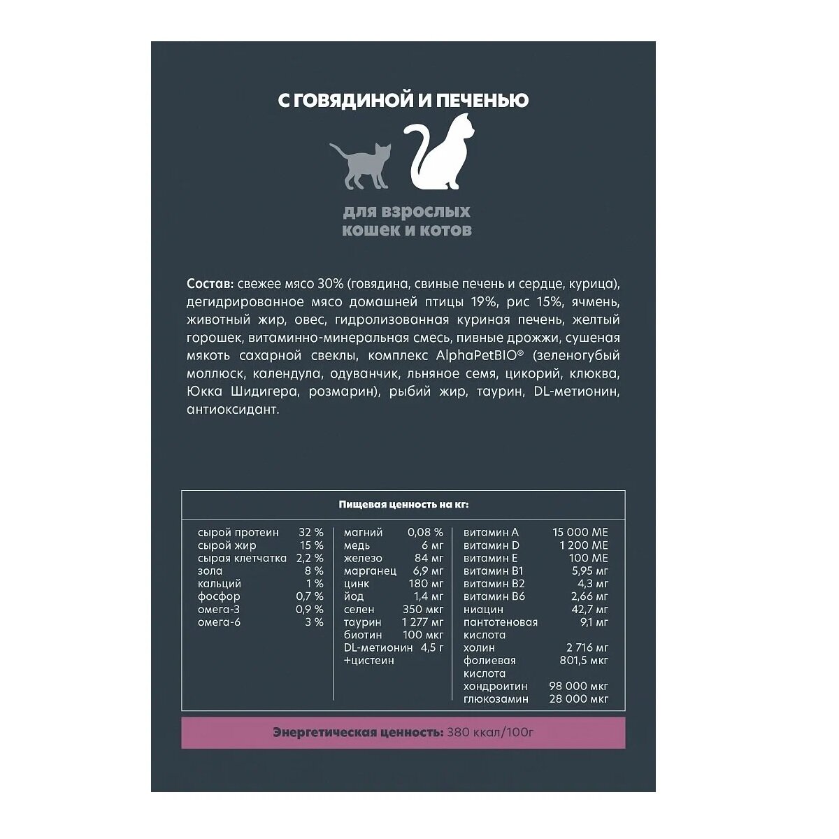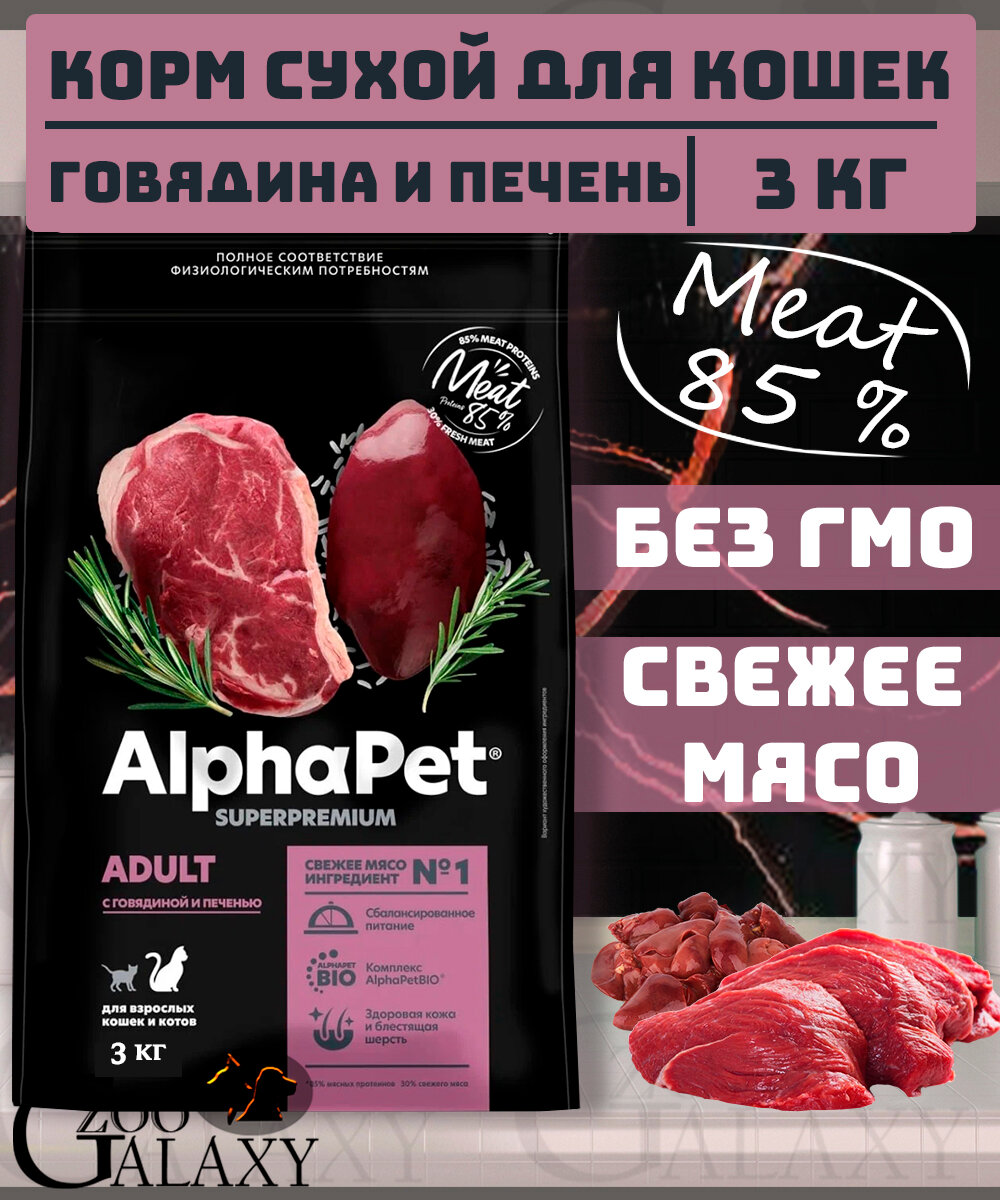 Купить Сухой полнорационный корм AlphaPet Superpremium для взрослых кошек и котов, с говядиной и печенью, 3 кг