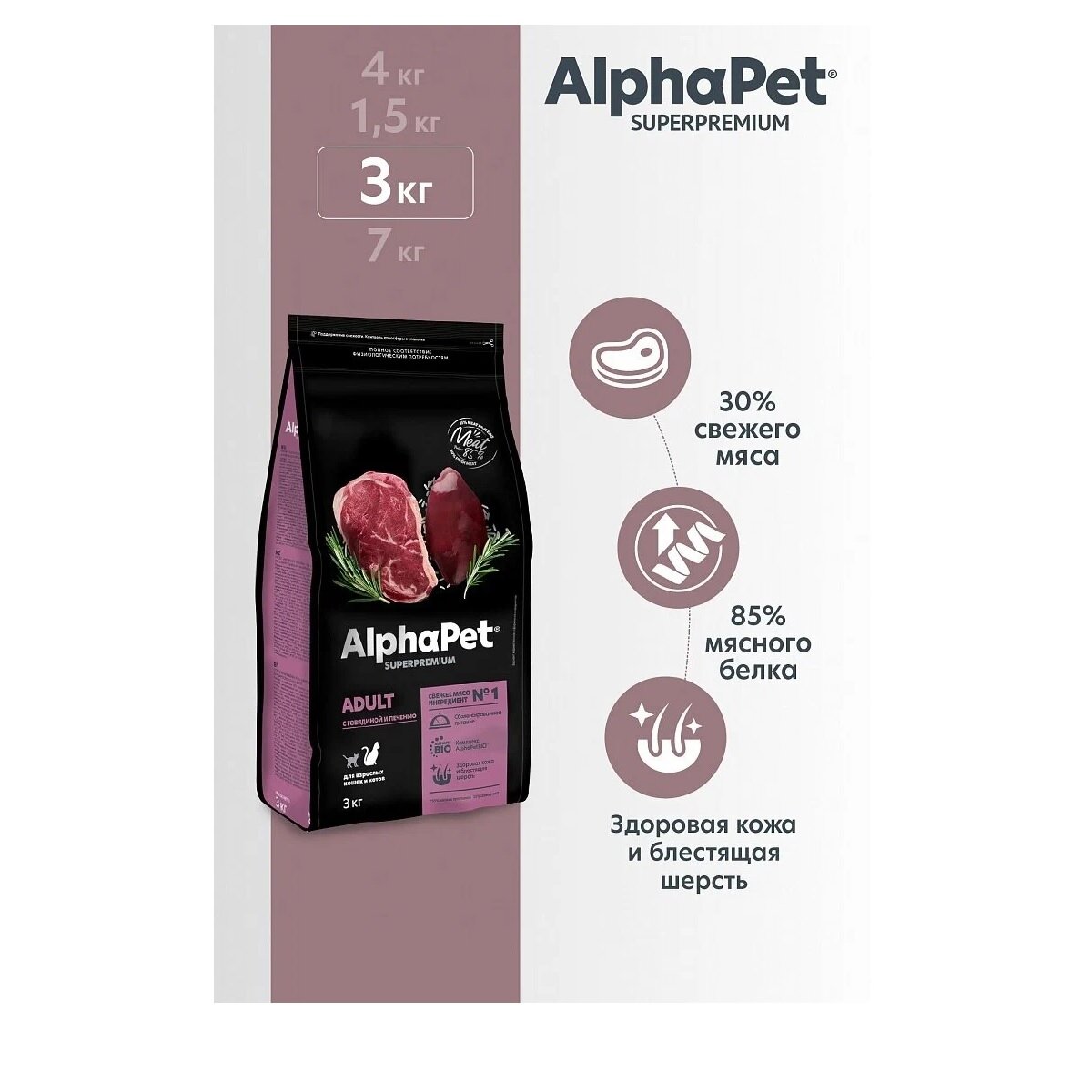 СохранитьСухой полнорационный корм AlphaPet Superpremium для взрослых кошек и котов, с говядиной и печенью, 3 кг интересное: