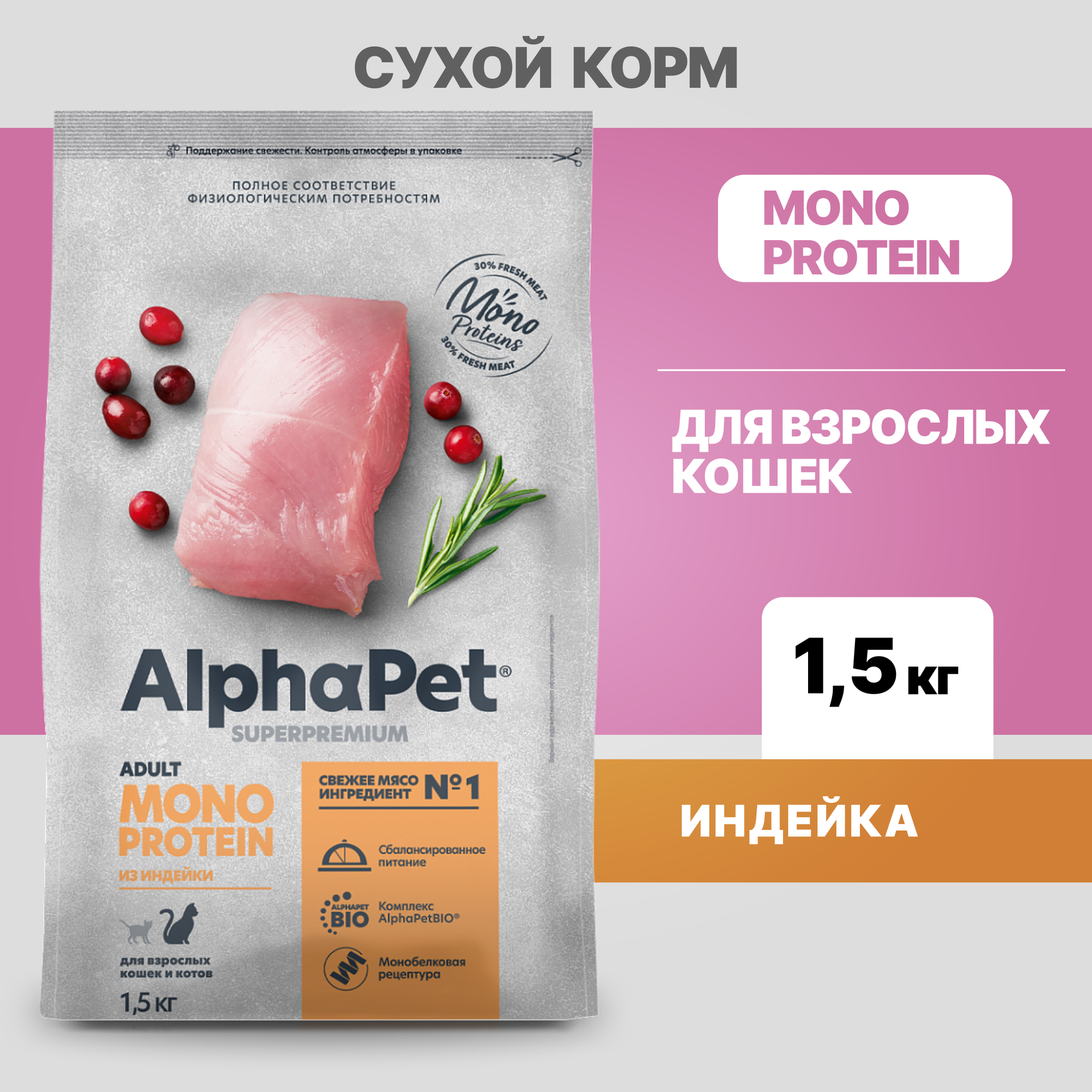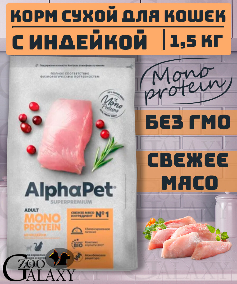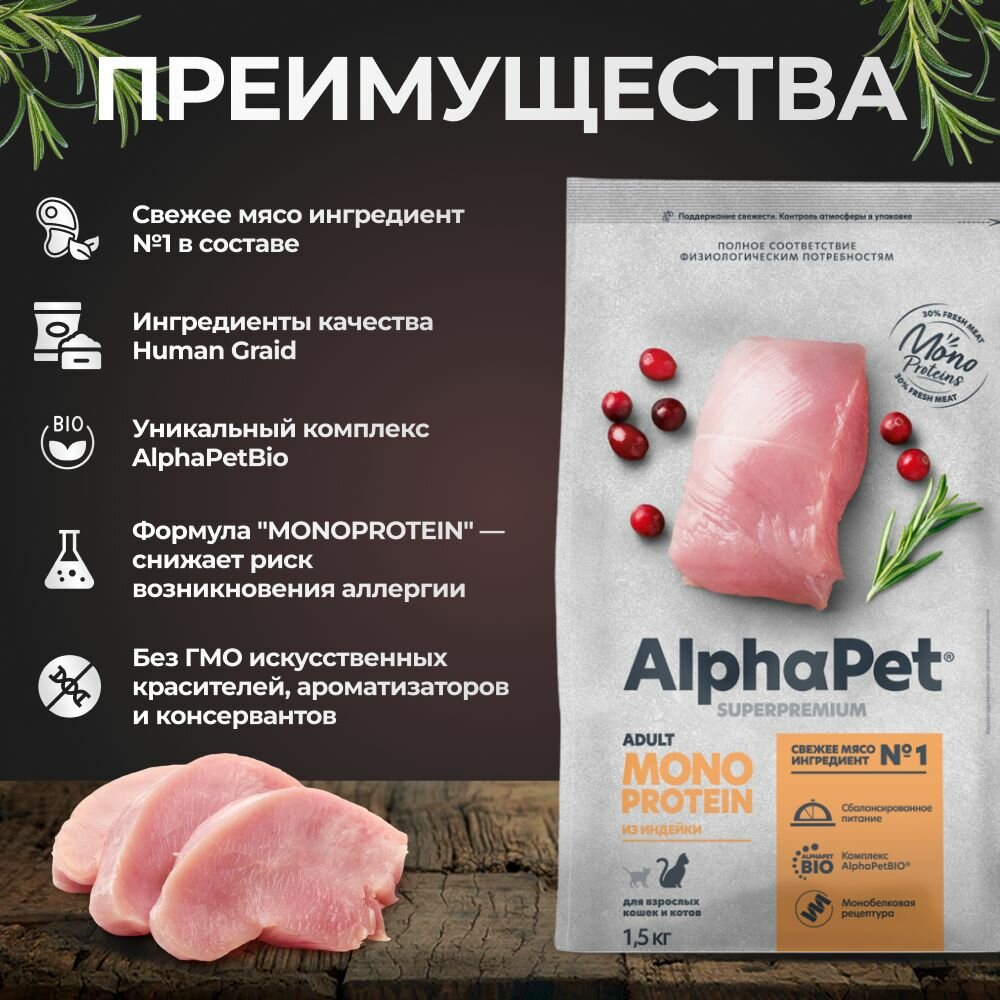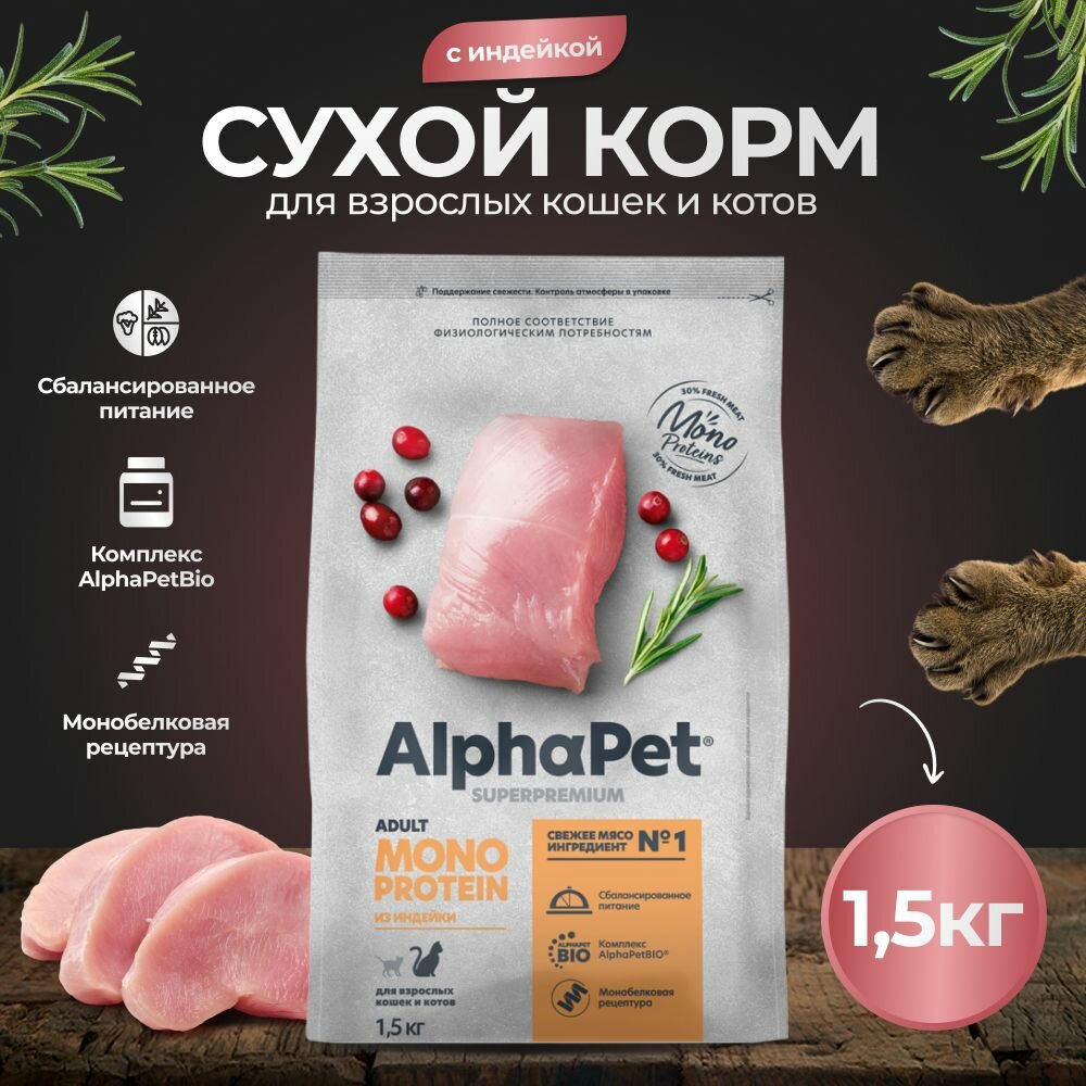 Купить Сухой корм для кошек AlphaPet Superpremium с индейкой, 1,5 кг