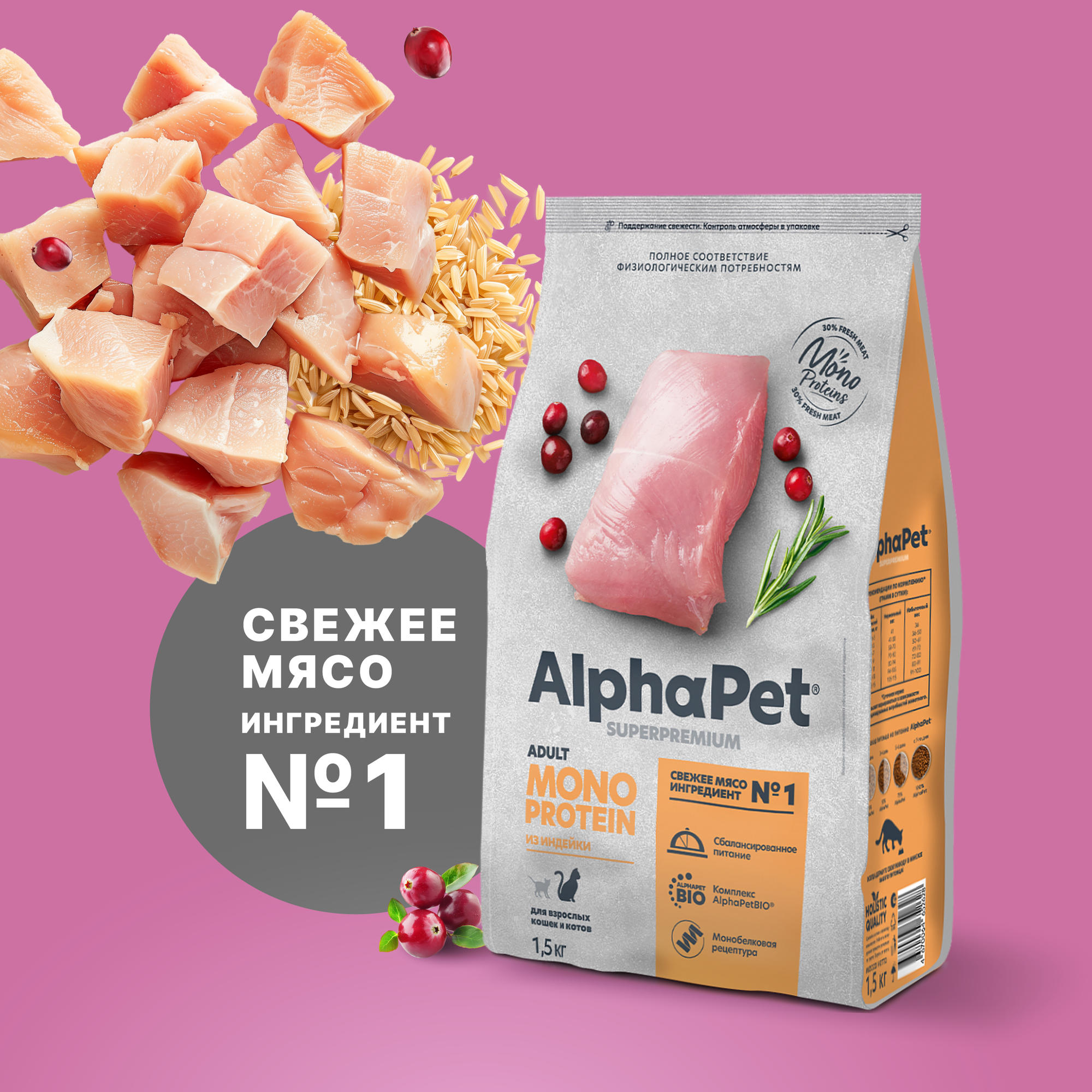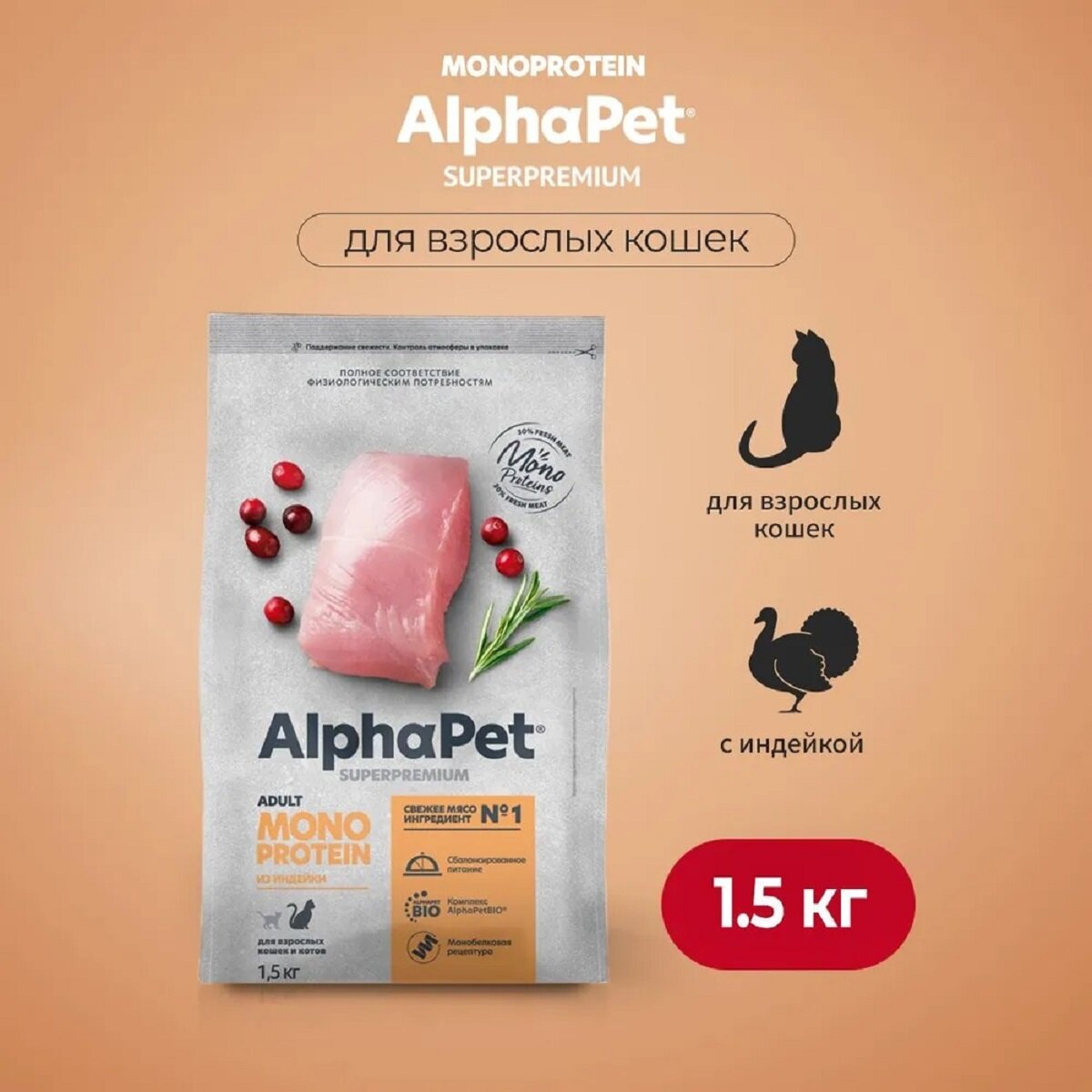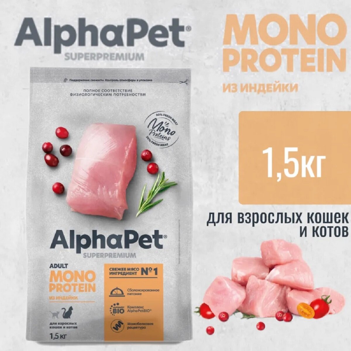 Купить Сухой корм для кошек AlphaPet Superpremium с индейкой, 1,5 кг