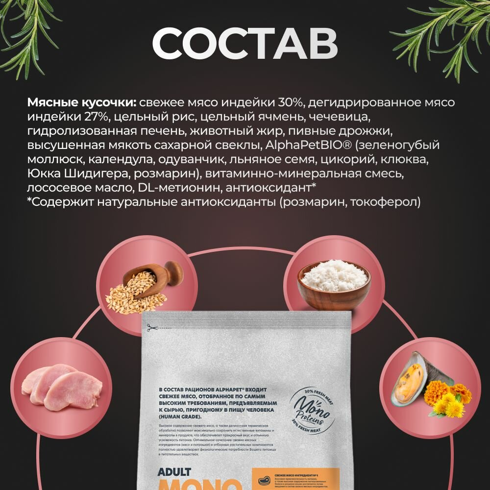 AlphaPet MONOPROTEIN сухой корм для кошек из Индейки 3кг