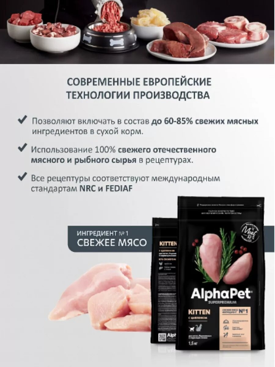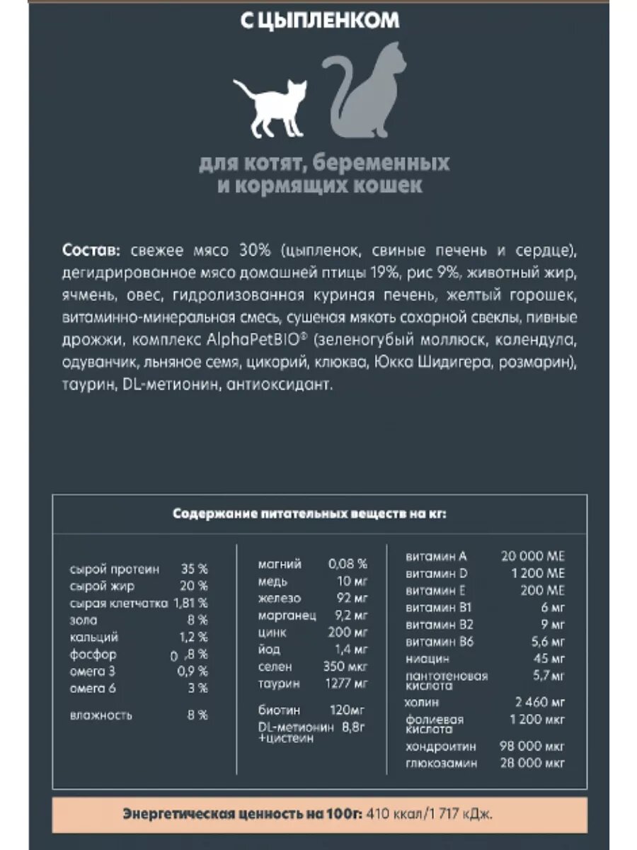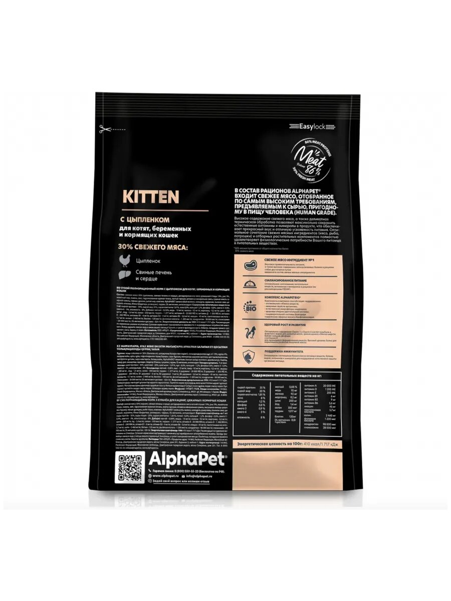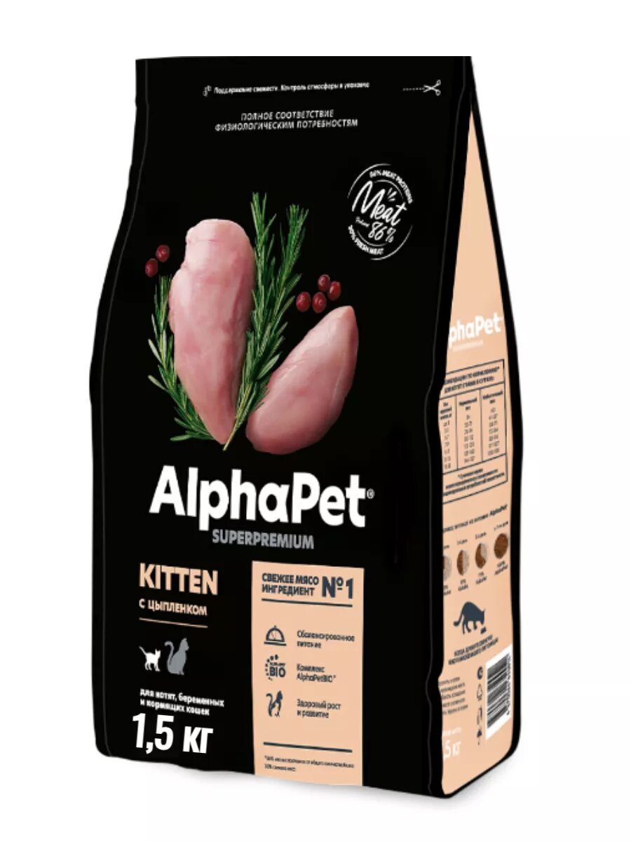 Купить Сухой корм AlphaPet полнорационный Superpremium с цыпленком, для котят, беременных и кормящих кошек, 1,5 кг