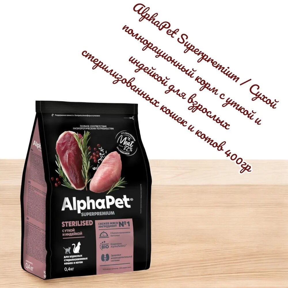 Купить AlphaPet Superpremium / Сухой полнорационный корм с уткой и индейкой для взрослых стерилизованных кошек и котов 400гр