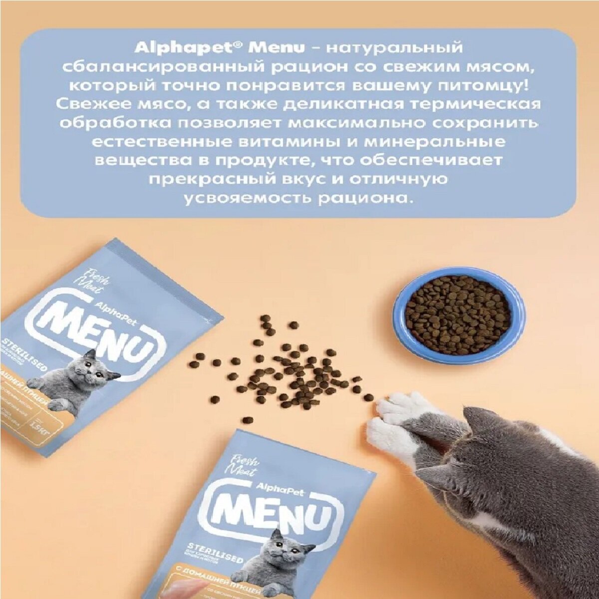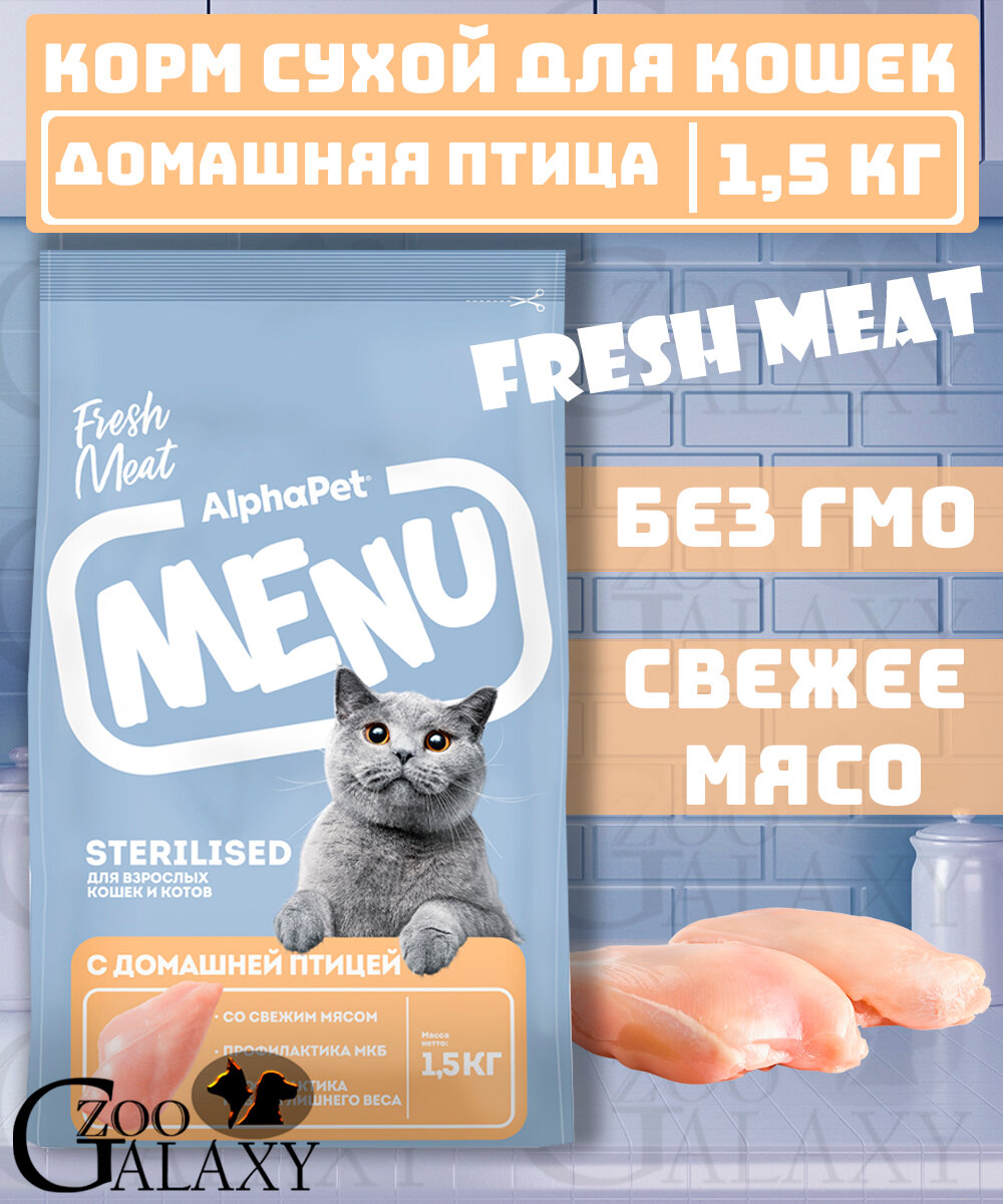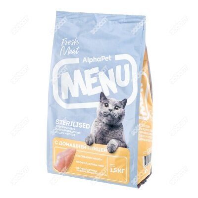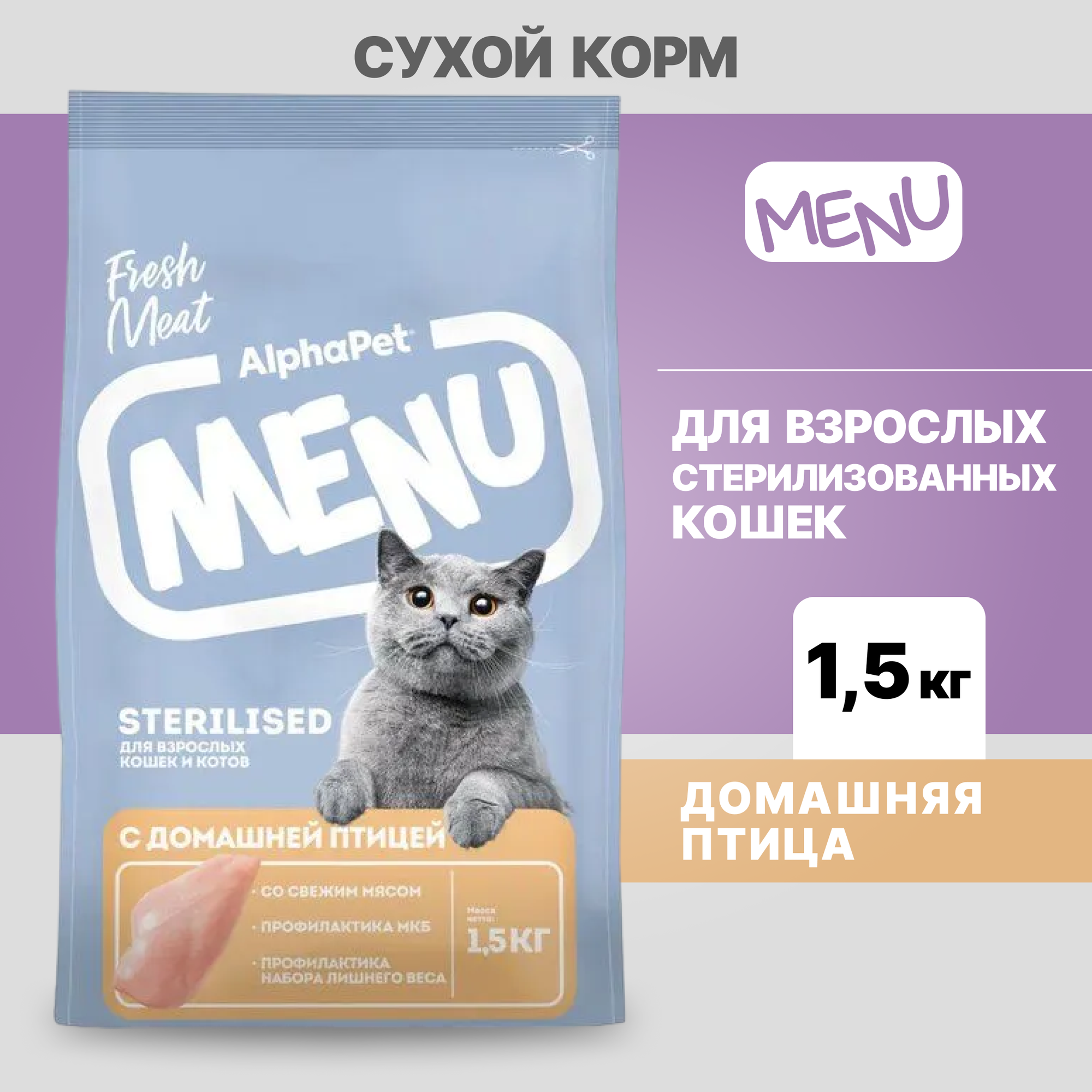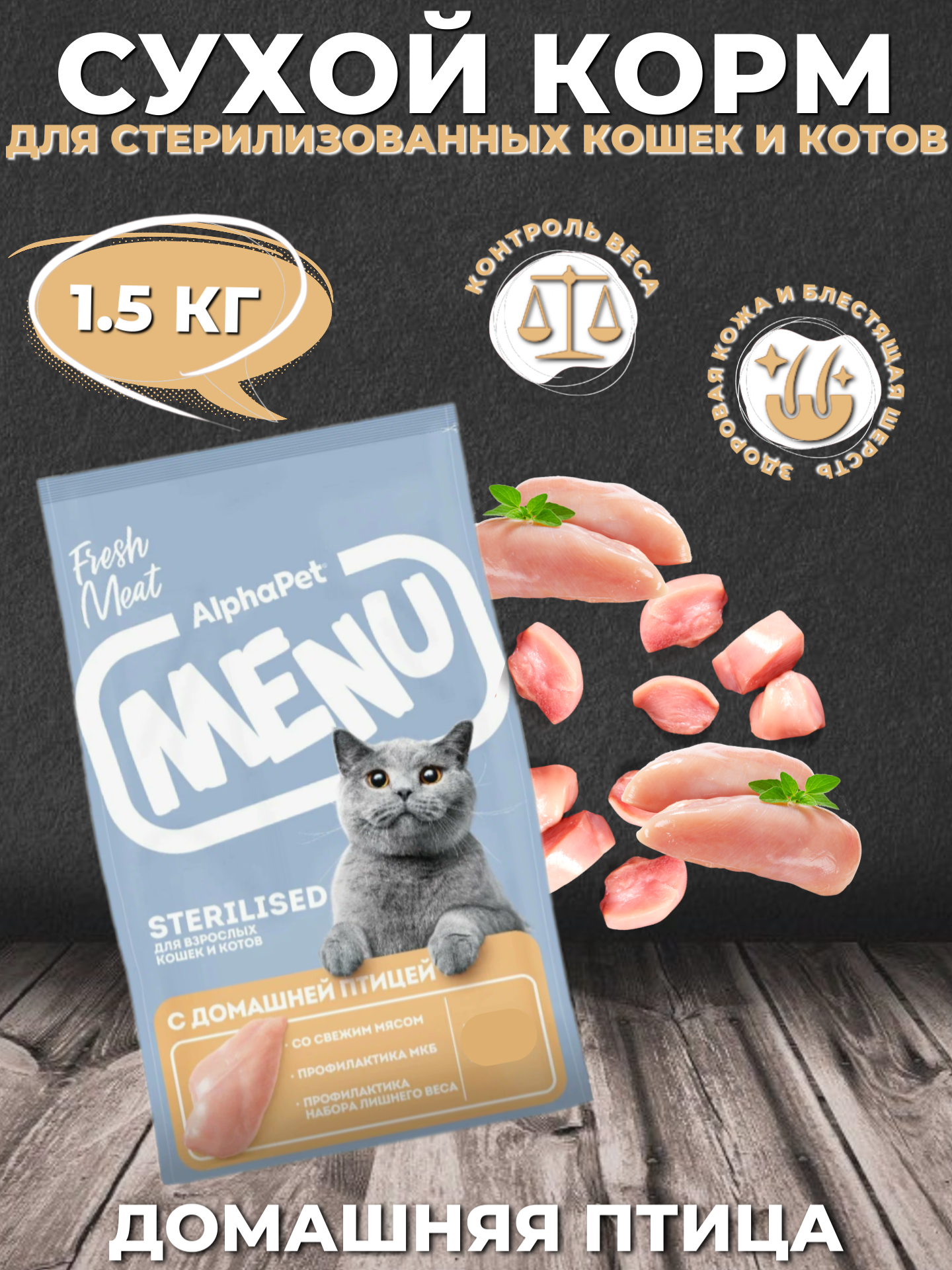 Купить Сухой корм для кастрированных котов и стерилизованных кошек AlphaPet MENU с домашней птицей, 1,5кг